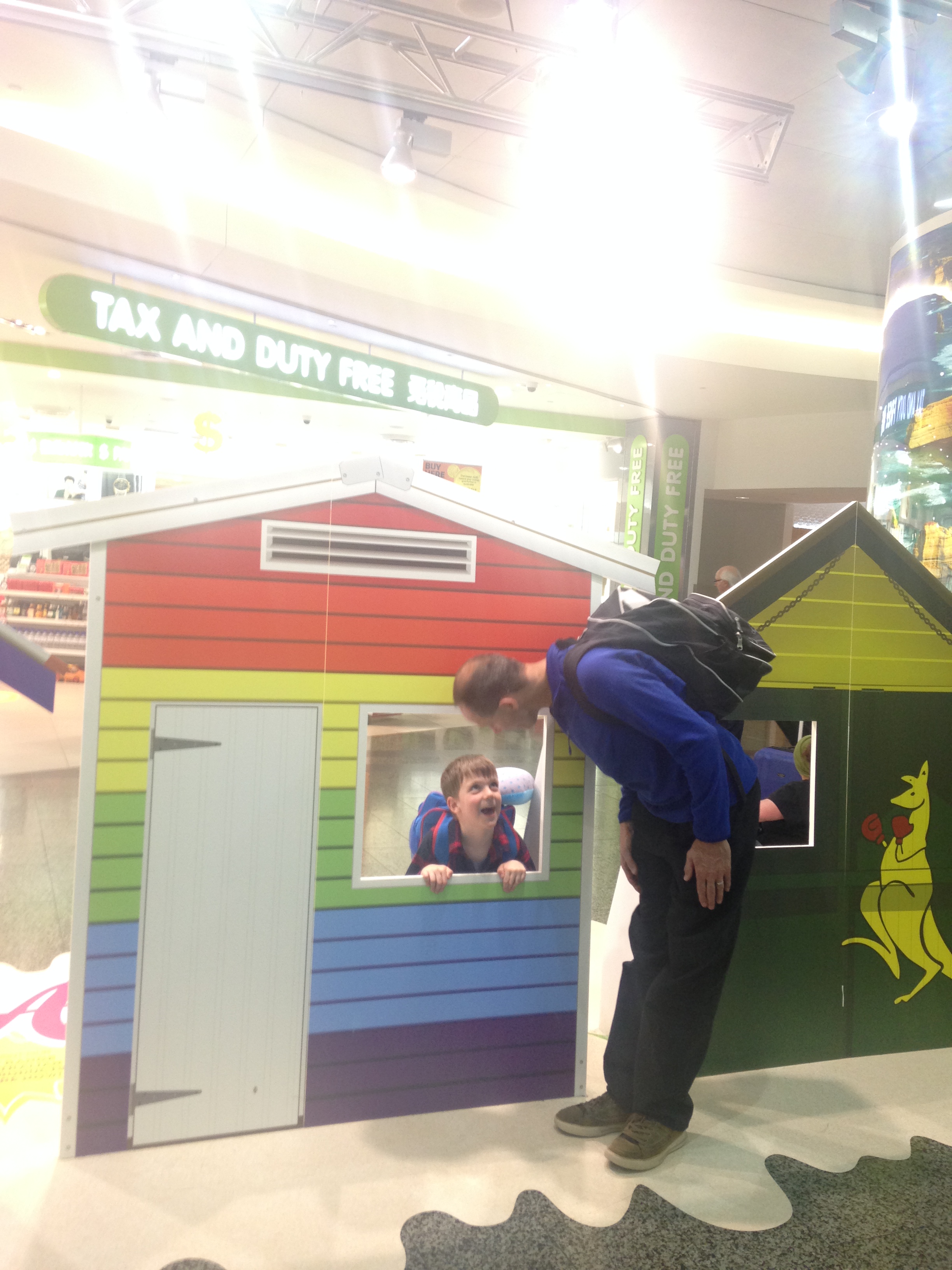 So picture this. Jess is sitting in the window seat looking paler than usual with a vomit bag ready. Hamish in the middle, is covered in vomit. I am in the aisle seat, holding my hands up like a surgeon waiting to have his gloves put on. Like troopers, we just wait it out until the pilots give the all clear. We have a spare set of clothes for Hamish and he happily strips down to his boxers whilst we clean up. Great. Another hour down.