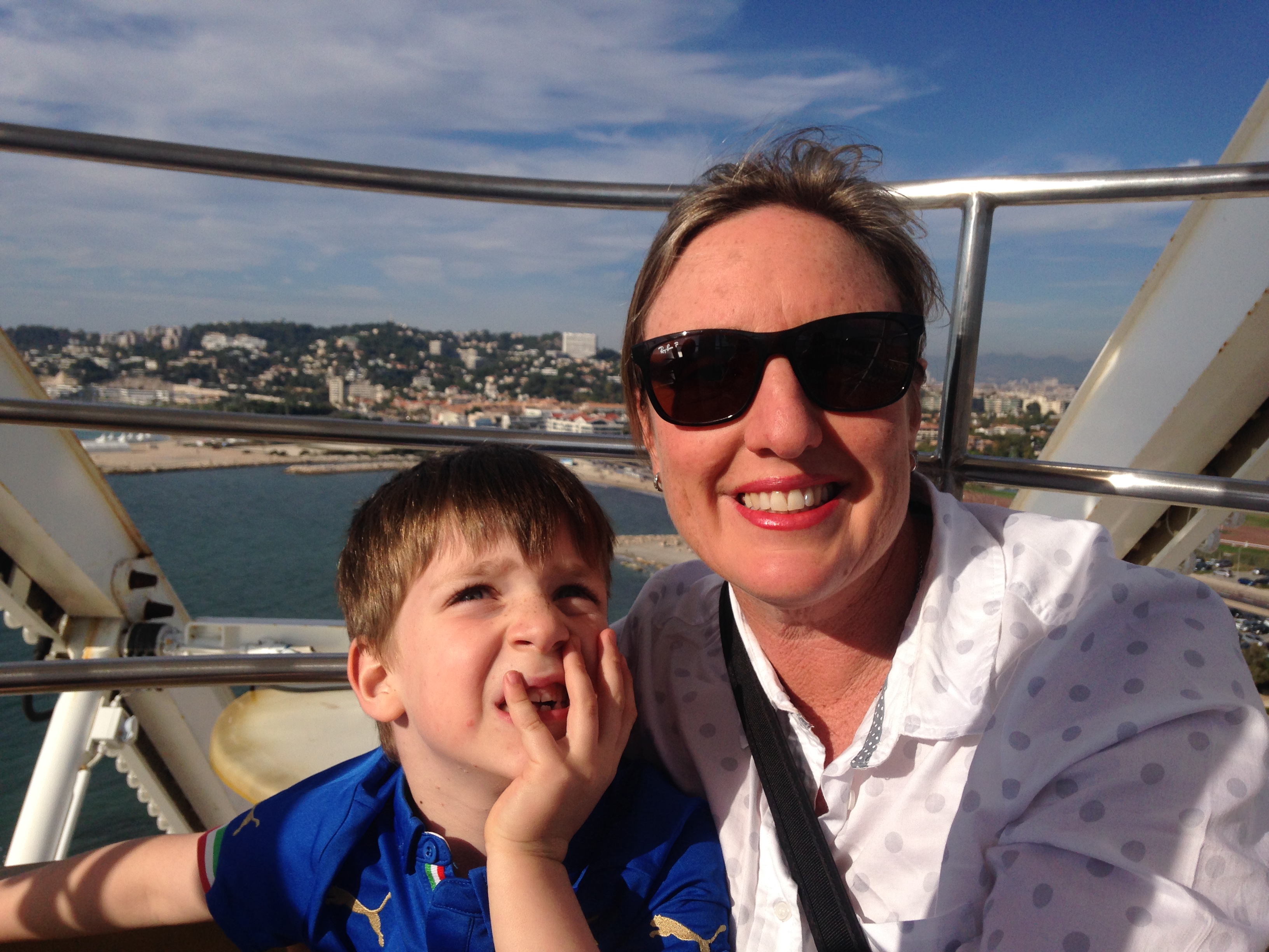 We then headed to a section of the esplanade that had rides and parks and restaurants. We all went on a huge Ferris wheel and put Hamish on a carousel ride, which he said, was the best part of the day (although the pictures tell a different story, you be the judge).