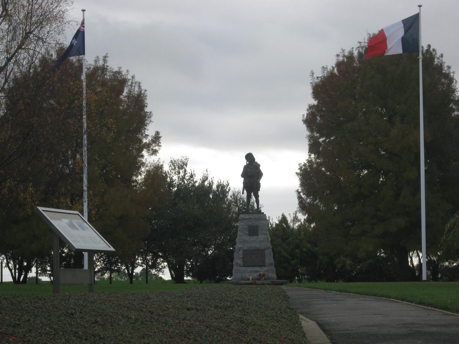 The town of Villers-Bretoneux honours Australians each year by celebrating ANZAC Day. Classrooms have ‘Never forget Australia’ on their walls and there are some oddly, out of place Australian bits and pieces; pictures of kangaroos, statues of children hugging kangaroos, the Victoria Hotel. There is also a French/Australian museum there, but it was in a state of dis-repair when we passed through today.