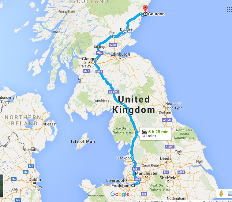 Monday morning we left Frodsham with reports of the entire UK covered in fog. Airports closed, traffic chaos, expected delays – we expected the worst on the way to our new destination of Gourdon in Scotland. Leaving at 10am, we thought we would arrive between 3pm and 4pm, but with the weather hazard, who knew how long this would take.