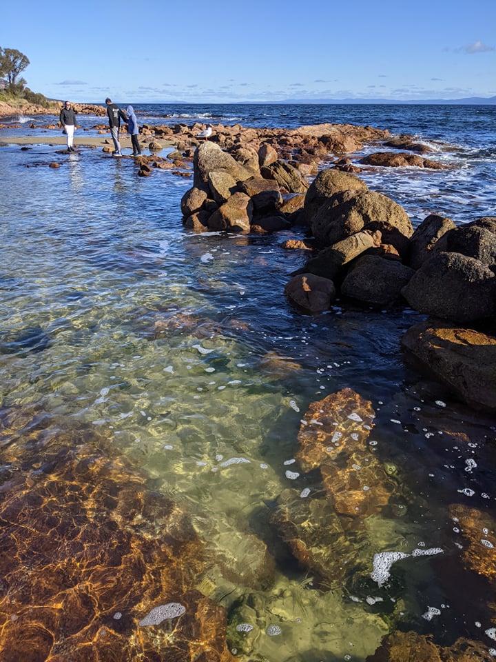 Once we arrived in Coles Bay, we still had a bit of time to kill before check-in, so we had lunch at the Tavern and walked on the beach. A few essentials were purchased before we headed to our lovely little home. The views are incredible – the weather yesterday was gorgeous and we even had coffee on the balcony.