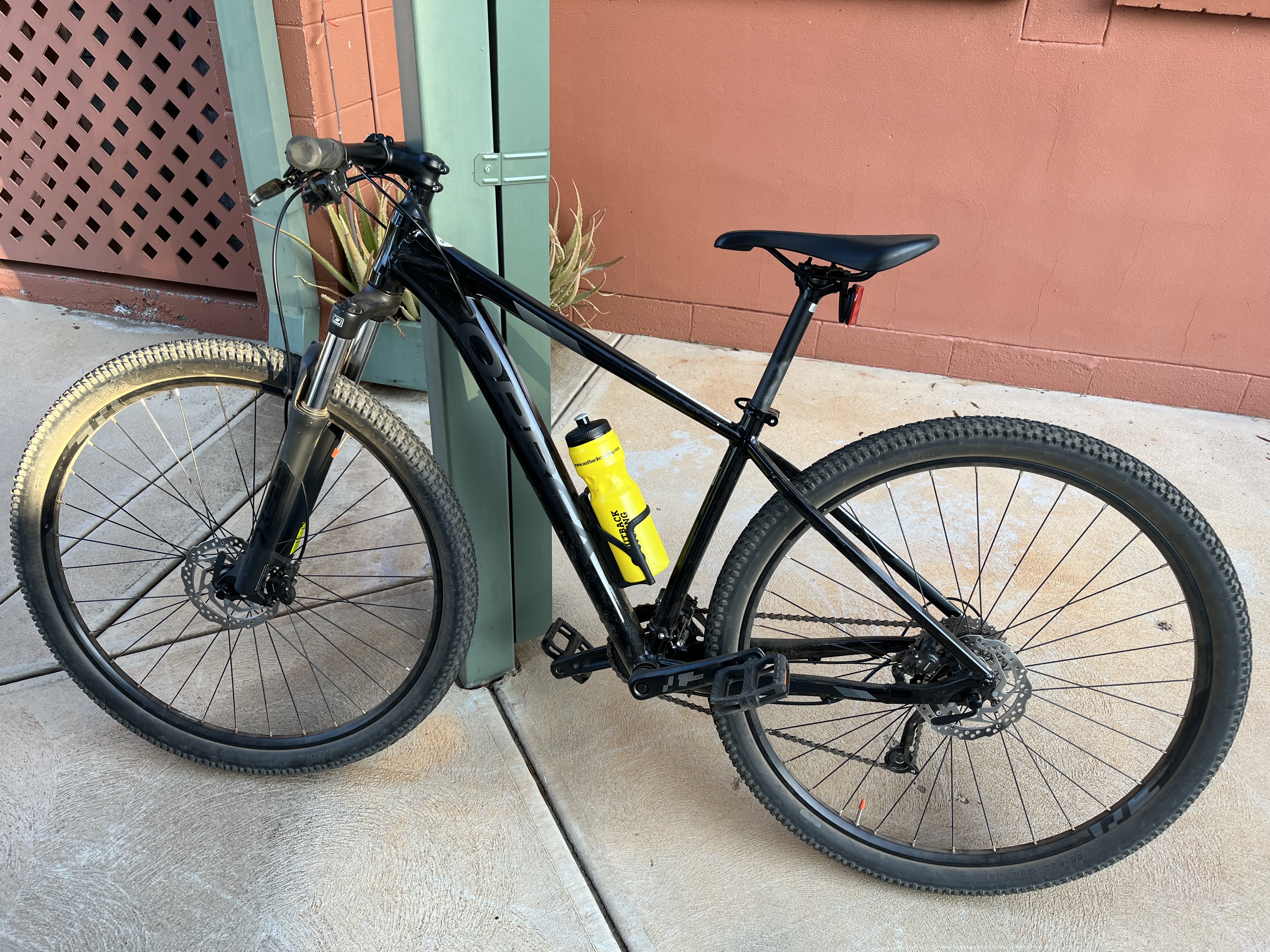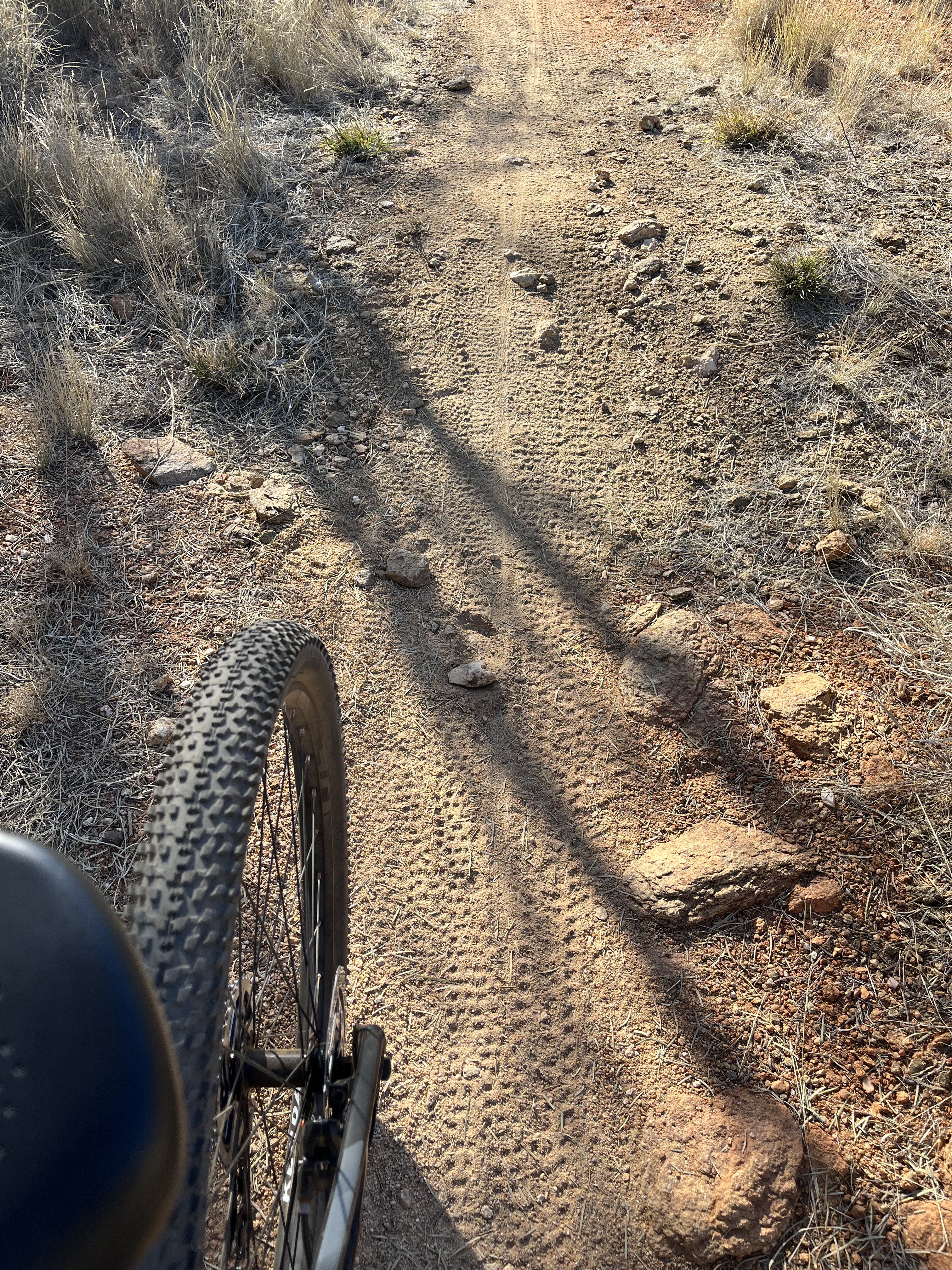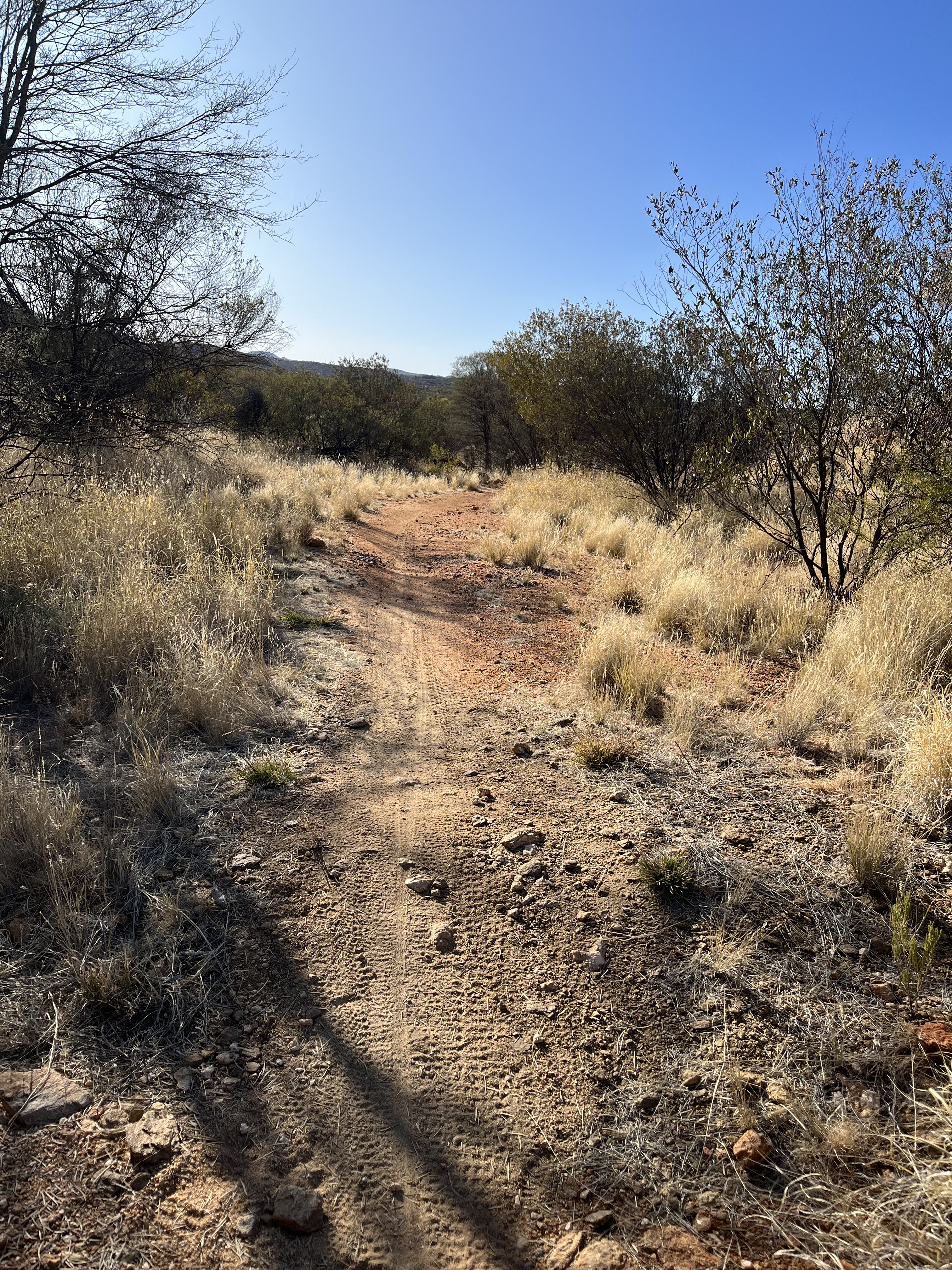 Belinda has hired a bike (hard tail Orbea) from the Outback Cycling bike shop (where they have bikes AND coffee) and I have borrowed Stewart’s dual-suspension Polygon. A bit of logistics follow; I drop Belinda at the shop, drive back to the house and then ride my bike to meet her there. It all works out as I try to remember my way around town. Belinda has a route picked out, but the man in the shop recommends another trail. So, we head off, past our old school and follow the Todd River towards the telegraph Station and beyond. The trail is coloured green (beginner) on the bike shop map and blue (intermediate) on Trail Forks (MTB app – which Belinda uses all the time). Blue wins. No question. It is quite rocky, fairly narrow and often quite steep.