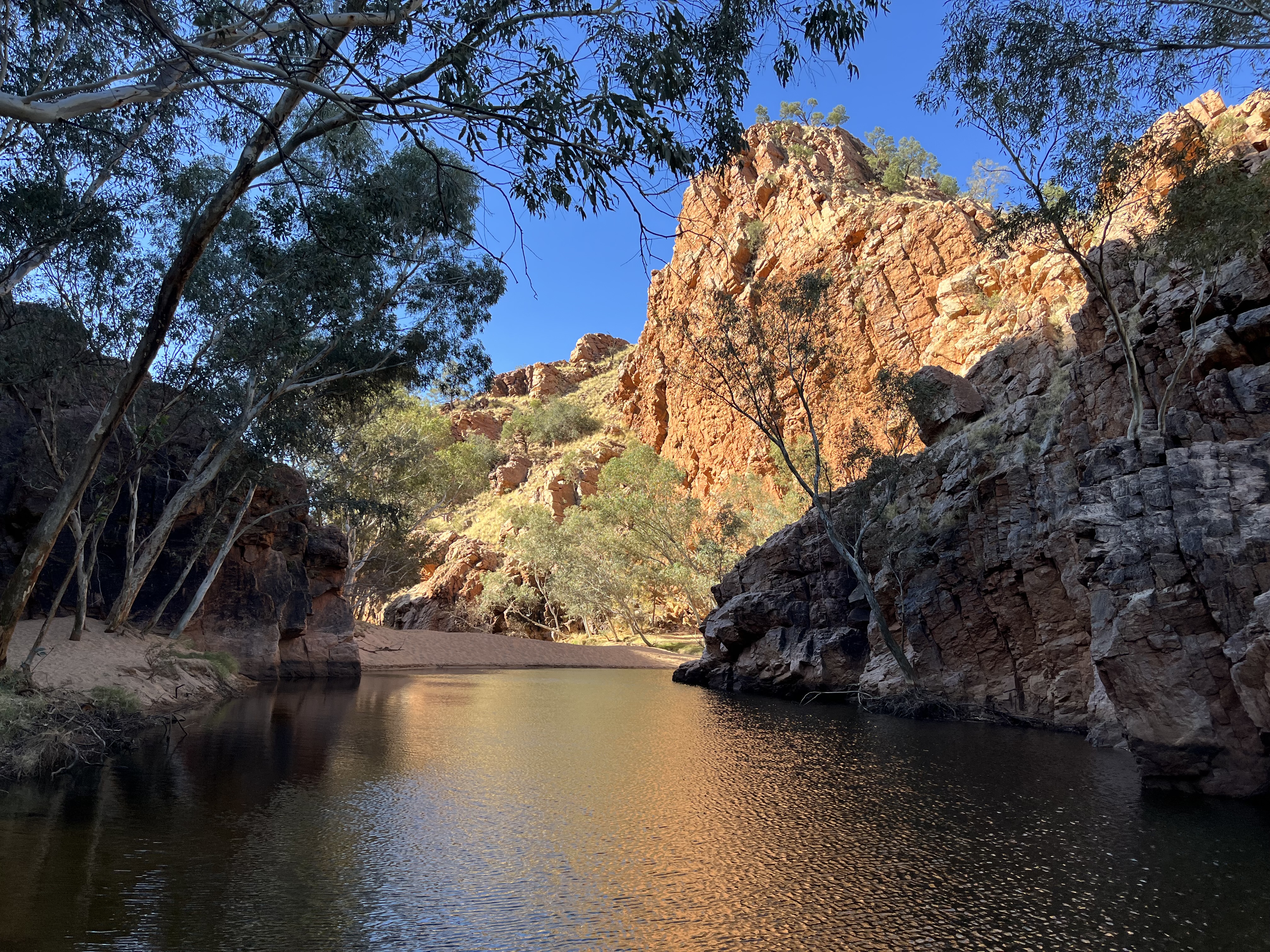 We returned the bike and picked up Eli and Hamish for a quick trip to the Eastern Macs to have a look at Emily & Jessie Gap. Jessie Gap has ancient rock artwork and Emily Gap is currently full of water. They are both beautiful sites to visit within 20 minutes of Alice.
