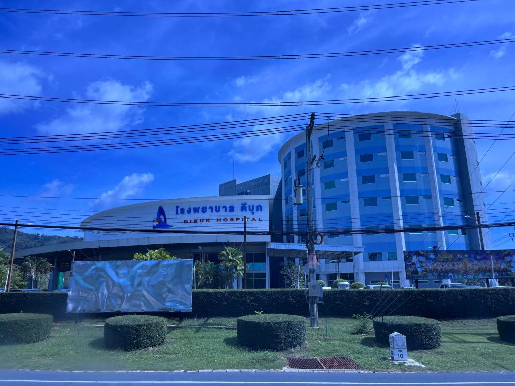 Thailand is a busy mix of chaotic traffic, old buildings, bountiful electric wires, run down shop fronts and progressive establishments, such as the hospital (see pic). There are no road rules, well, there are, but our mini-bus driver did not care to follow them as he turned a predicted 90 minute trip from the airport into 60 minutes. Impressive. At one point, Rod and I discussed if Thailand used the metric system, as the driver chose to ignore all speed limits. Lucky we were so overtired as to not be concerned for our safety. It was a wild, wild ride – constant lane changes, last minute braking & talking on his mobile (hands-free of course…). Hamish slept through this.