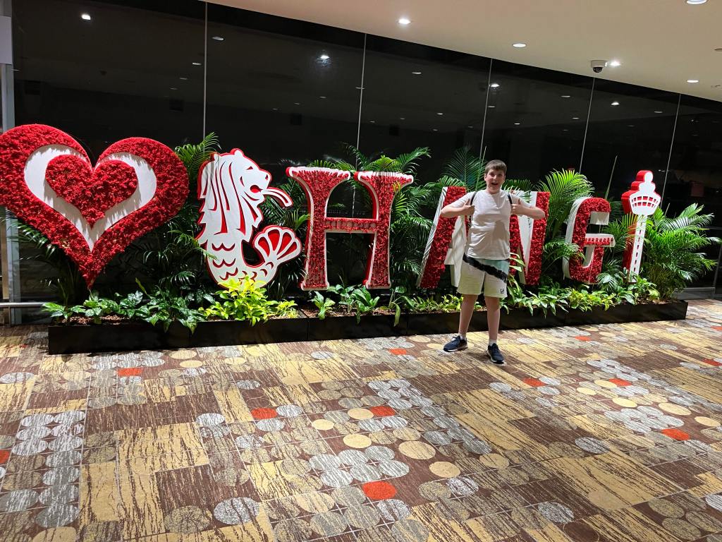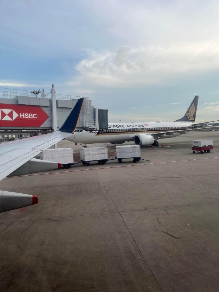 We hung out in the departure lounge with a few hundred others and after a short-ish delay, we were on our way. The 787 Dreamliner was full and we had a smooth flight to Singapore. As mentioned, Scoot are the non-full service carrier of Singapore, but staff were great, our meals fine and somehow the 3 of us each scored a blankie!