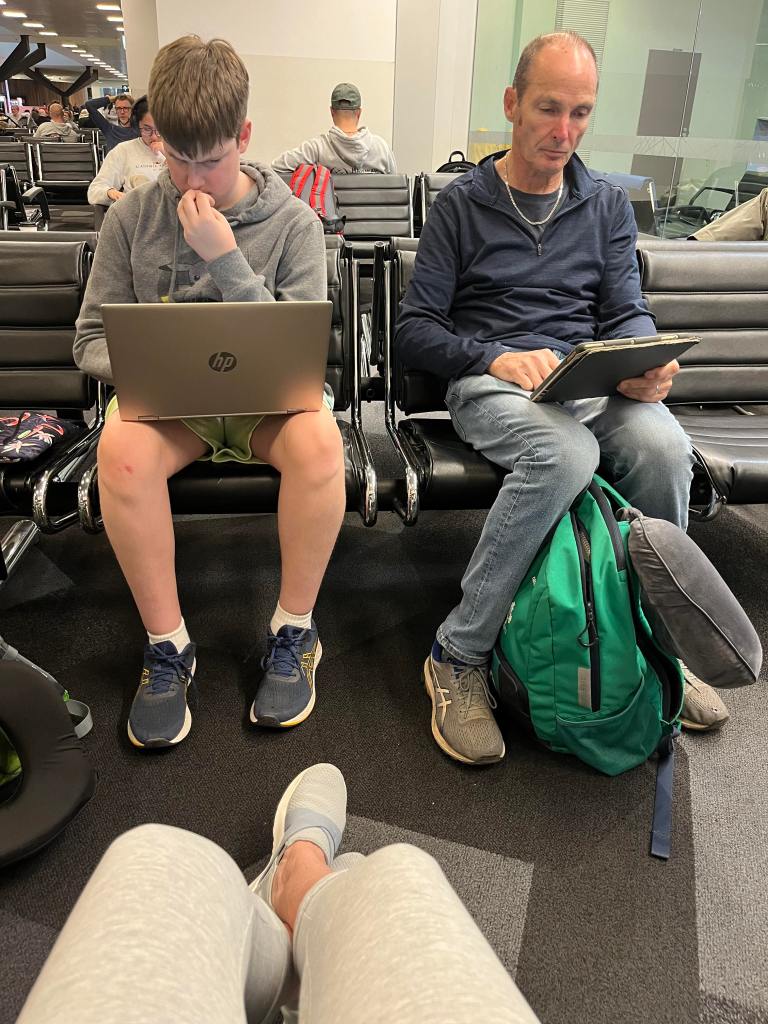 Neither Rod nor Hamish slept, but I managed probably 4 x blocks of 30 mins which helped at the other end of the day. Once in Singapore we hit Starbucks for coffee, hot chocolate and just a couple of plain bagels, which predictably cost a mint! We made our way to another terminal and found our gate. I prepared a small sleeping space and managed another hour or so. Rod and Hamish said they tried, but were just unable to relax.