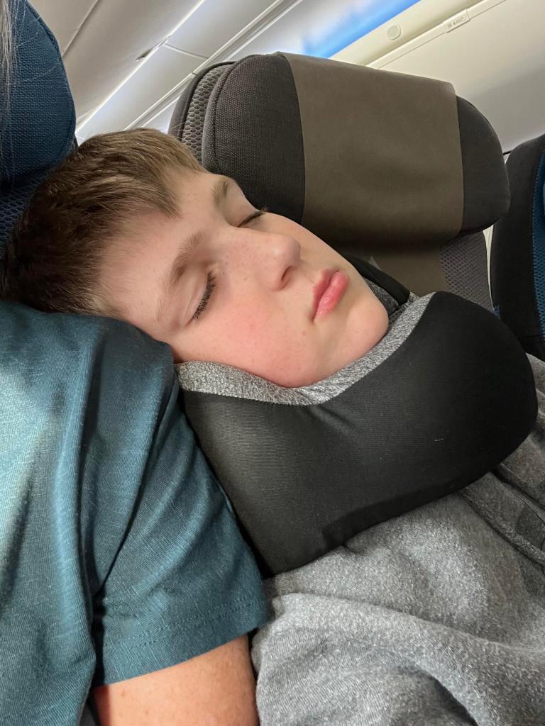 Our next short flight was from Singapore to Phuket (about 2 and a half hours). Hamish was asleep before we taxied to the runway. He said, “wake me for food” and that was it for a while. We had some delicious spicy noodles for breakfast and the flight was over pretty quickly.