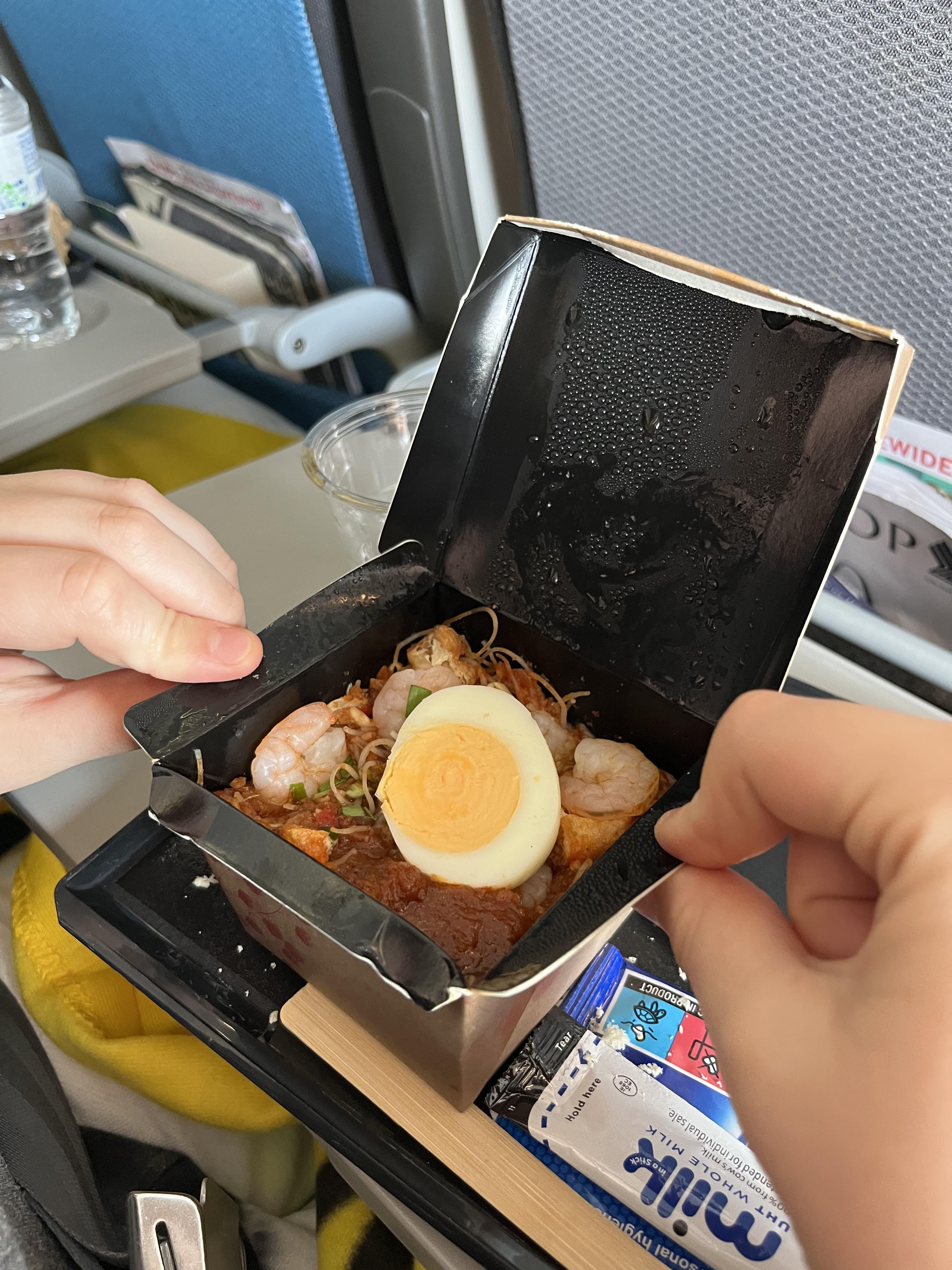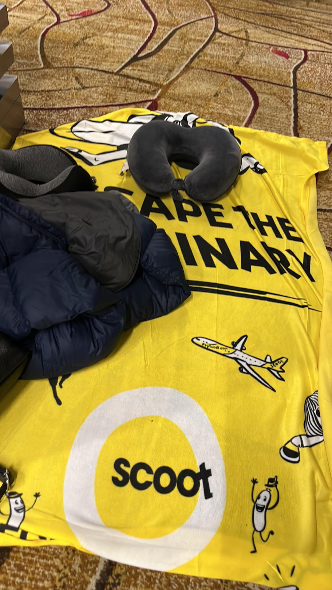 We hung out in the departure lounge with a few hundred others and after a short-ish delay, we were on our way. The 787 Dreamliner was full and we had a smooth flight to Singapore. As mentioned, Scoot are the non-full service carrier of Singapore, but staff were great, our meals fine and somehow the 3 of us each scored a blankie!