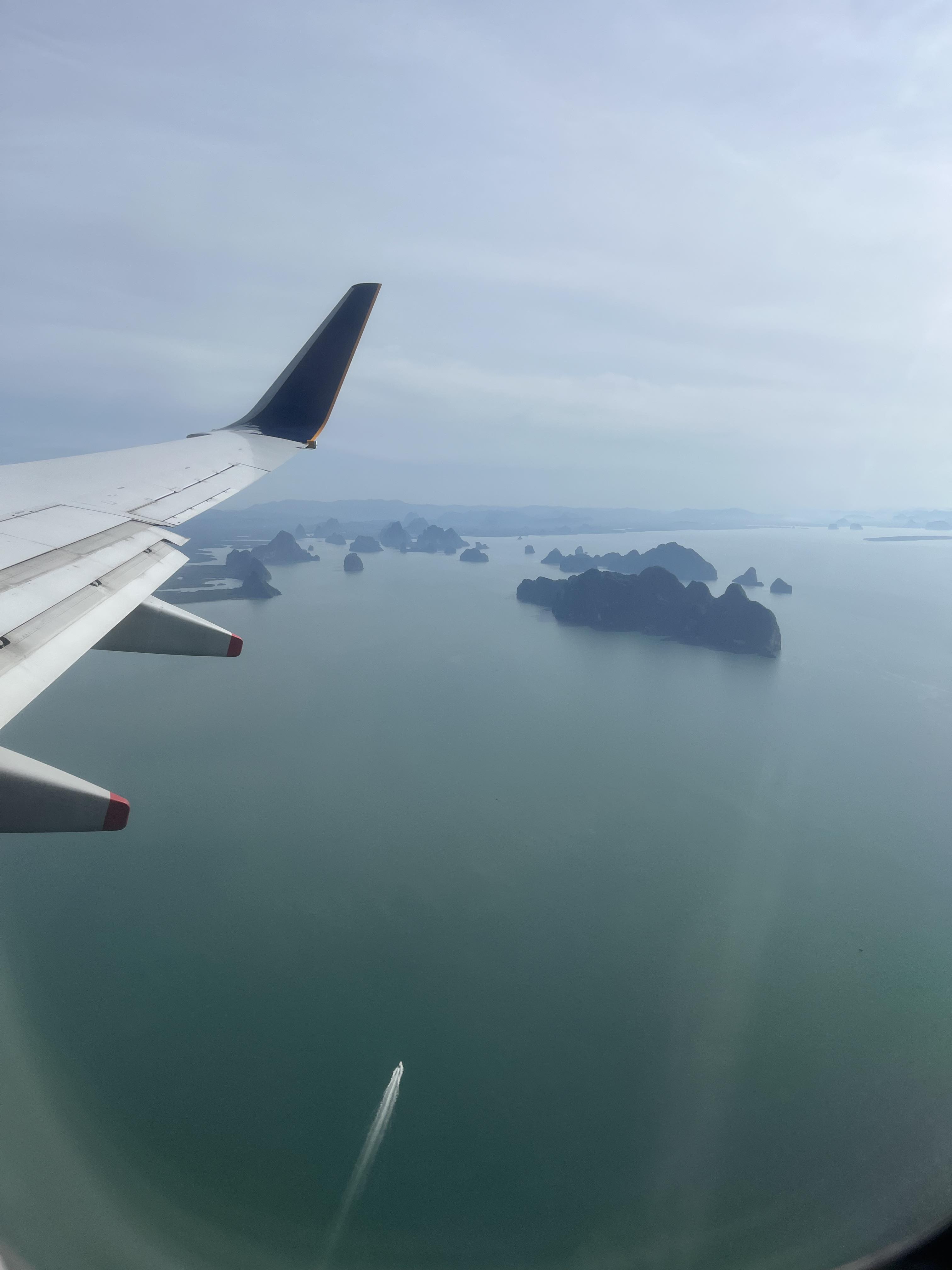Flying along/over the Malaysian coast and into Thailand was lovely, with plenty of islands, mountains, meandering rivers and boats to been seen from the air. Whenever I travel, I am both overwhelmed and so grateful of the experiences; today there were a few “I can’t believe I’m in Thailand” – type comments, not just from myself & Rod, but from Hamish too. He has the travel bug and has been keen to update his friends of his travels so far.