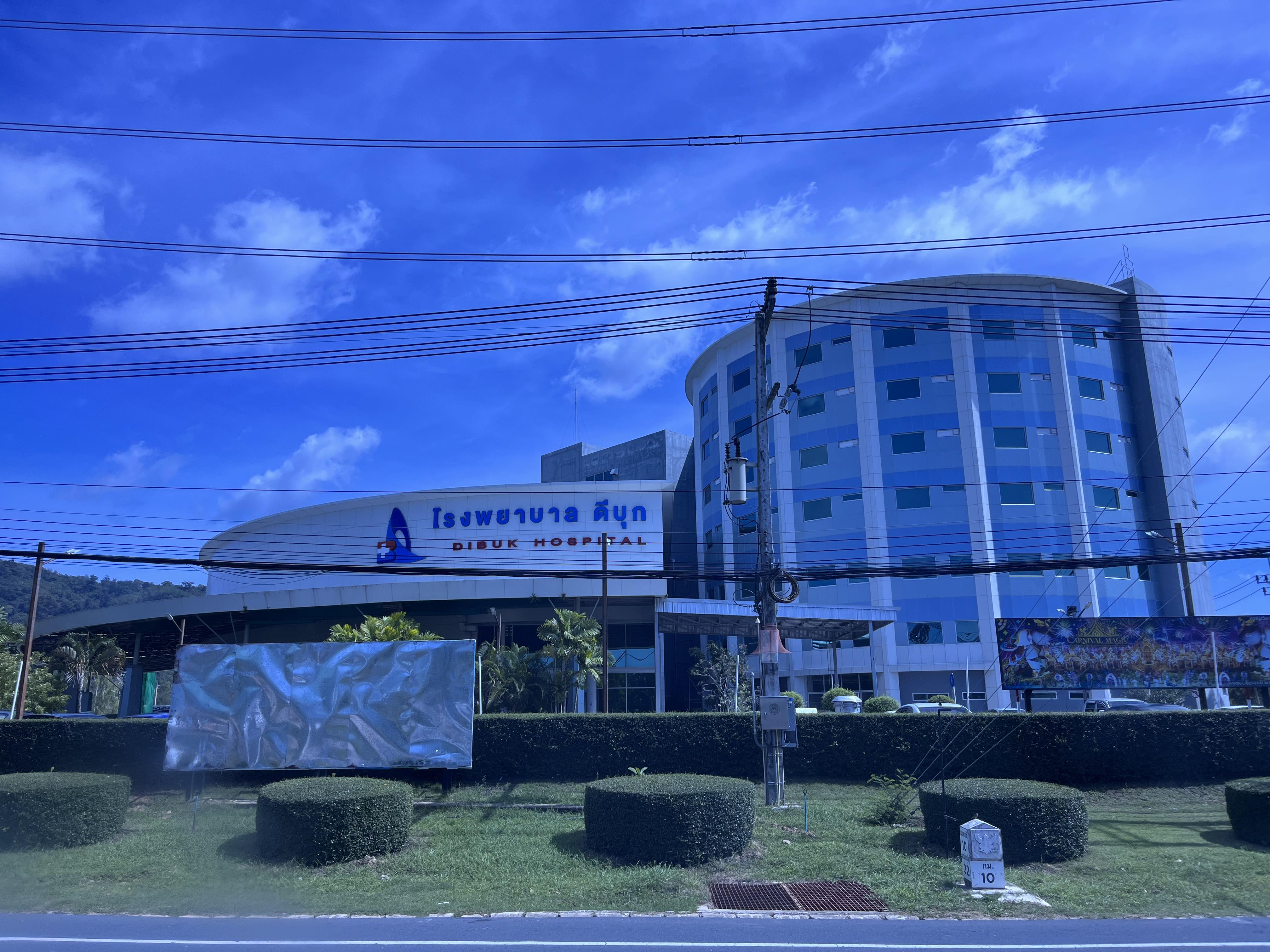 Thailand is a busy mix of chaotic traffic, old buildings, bountiful electric wires, run down shop fronts and progressive establishments, such as the hospital (see pic). There are no road rules, well, there are, but our mini-bus driver did not care to follow them as he turned a predicted 90 minute trip from the airport into 60 minutes. Impressive. At one point, Rod and I discussed if Thailand used the metric system, as the driver chose to ignore all speed limits. Lucky we were so overtired as to not be concerned for our safety. It was a wild, wild ride – constant lane changes, last minute braking & talking on his mobile (hands-free of course…). Hamish slept through this.
