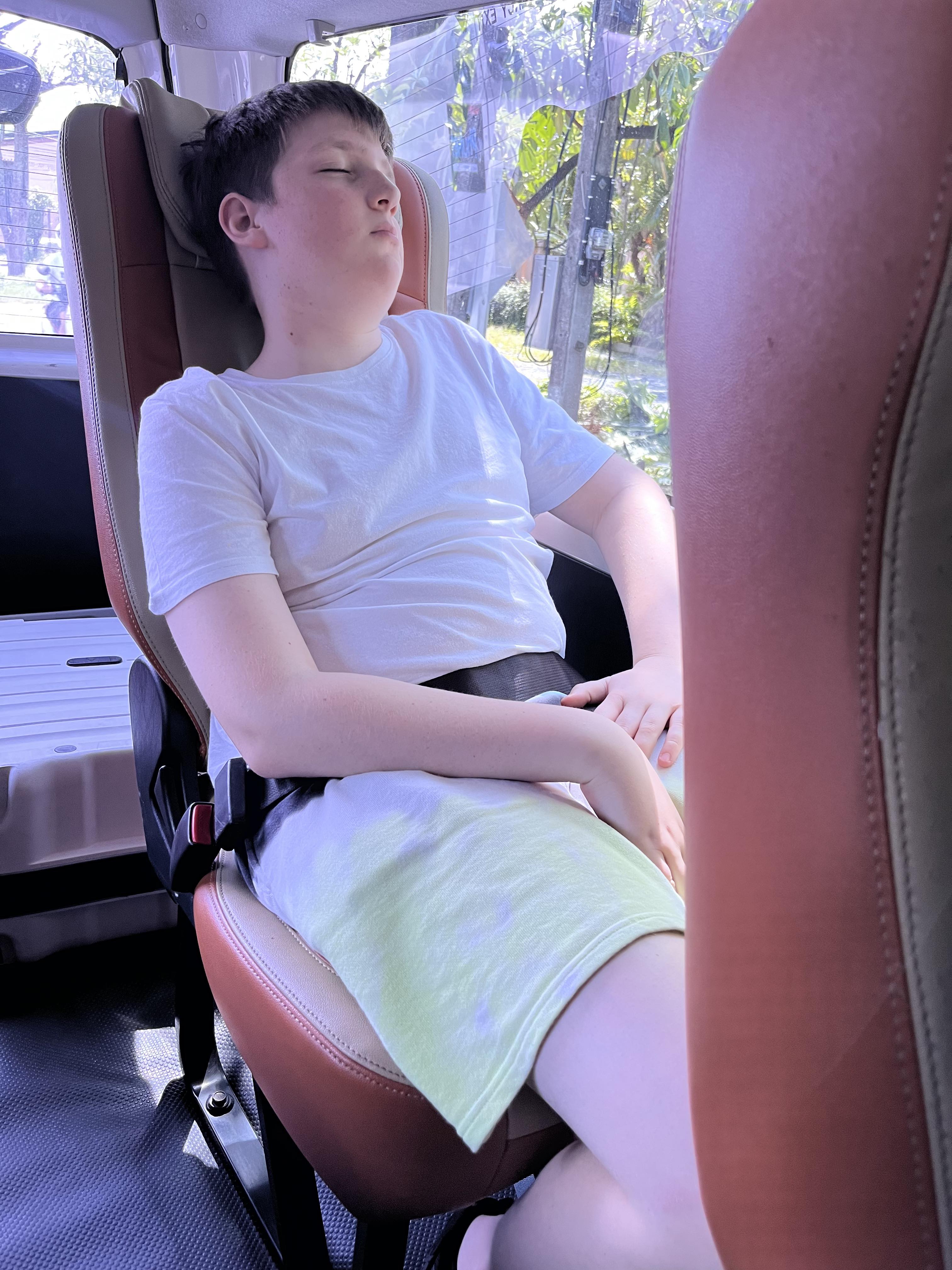 Our next short flight was from Singapore to Phuket (about 2 and a half hours). Hamish was asleep before we taxied to the runway. He said, “wake me for food” and that was it for a while. We had some delicious spicy noodles for breakfast and the flight was over pretty quickly.