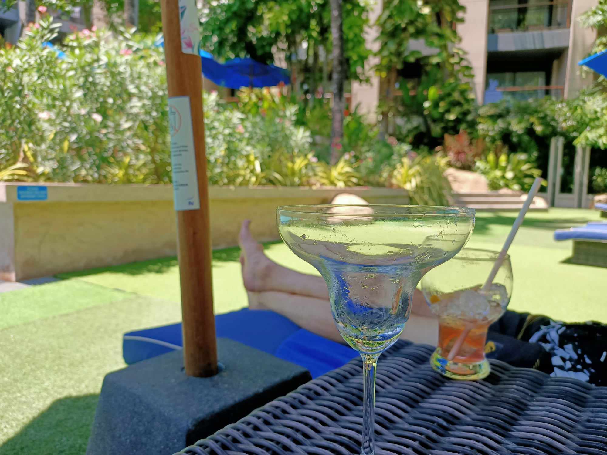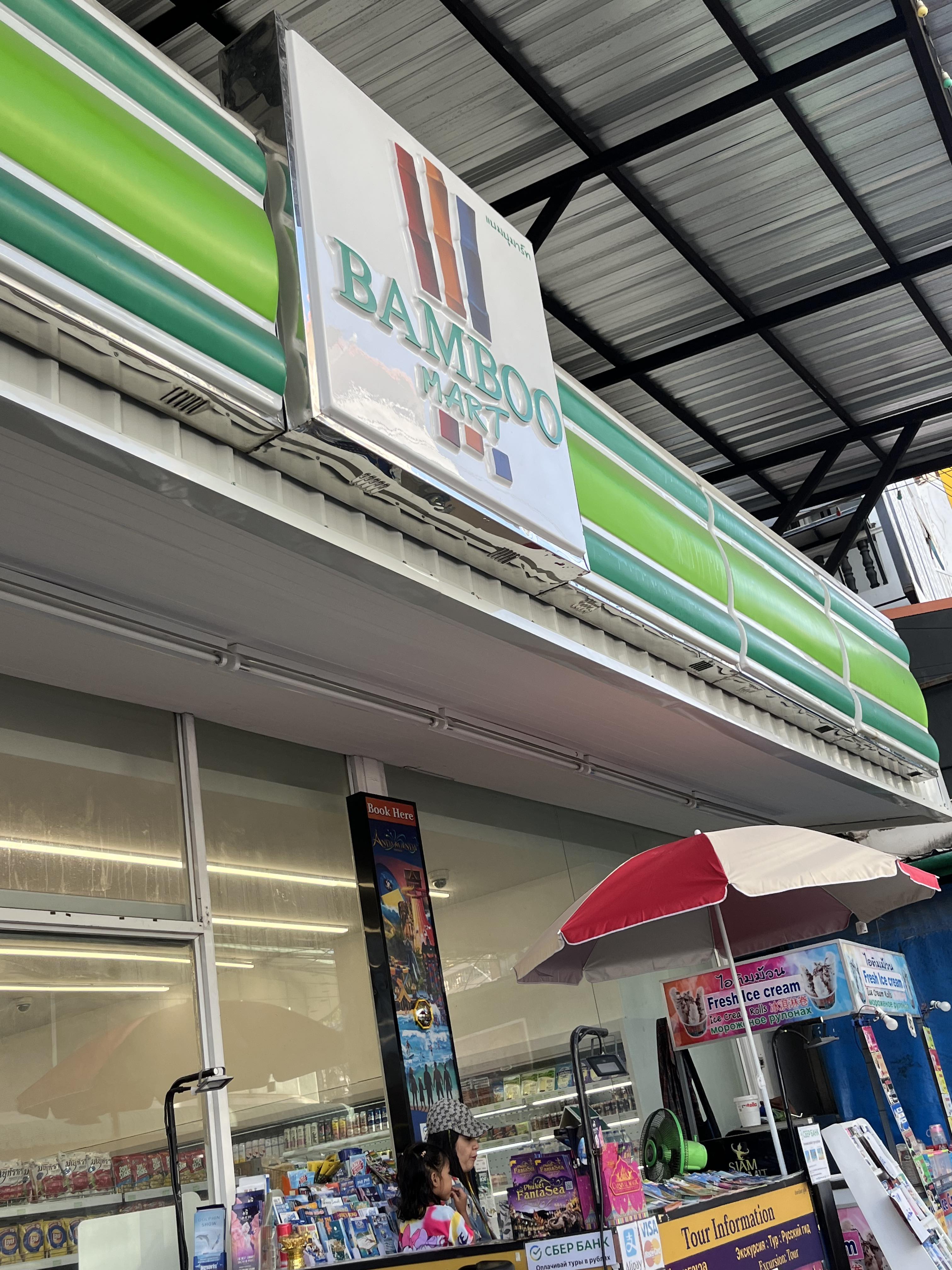 Our hotel is just beautiful. We arrived and decided a swim, followed by a sleep were probably our best idea. Rod and I walked into the town area late this afternoon and got a few supplies from the Bamboo Mart: water, a couple of beers, two small wines (well we’re not sure exactly what they are, but Rod has already drunk one…) a couple of cans of fanta and some other Asian treats. I bought a hat and the shop owner told me how I’ll need it because it’s hot in Thailand.