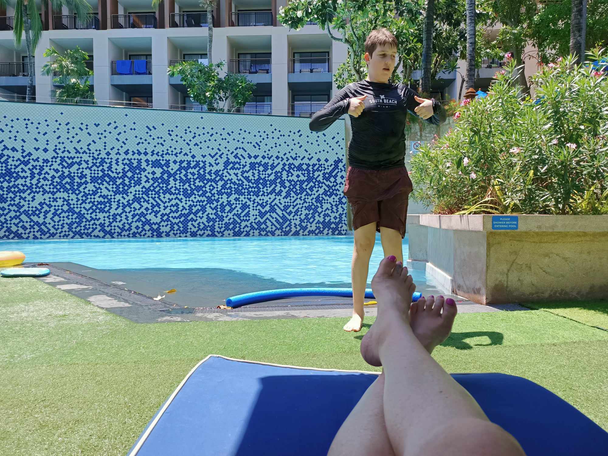 Hamish’s thoughts on Thailand: “What a great place Thailand is. It started off as cool inside the airport, but then when we went outside the humidity just hit. My sleep was good on the mini bus. The food is great.”