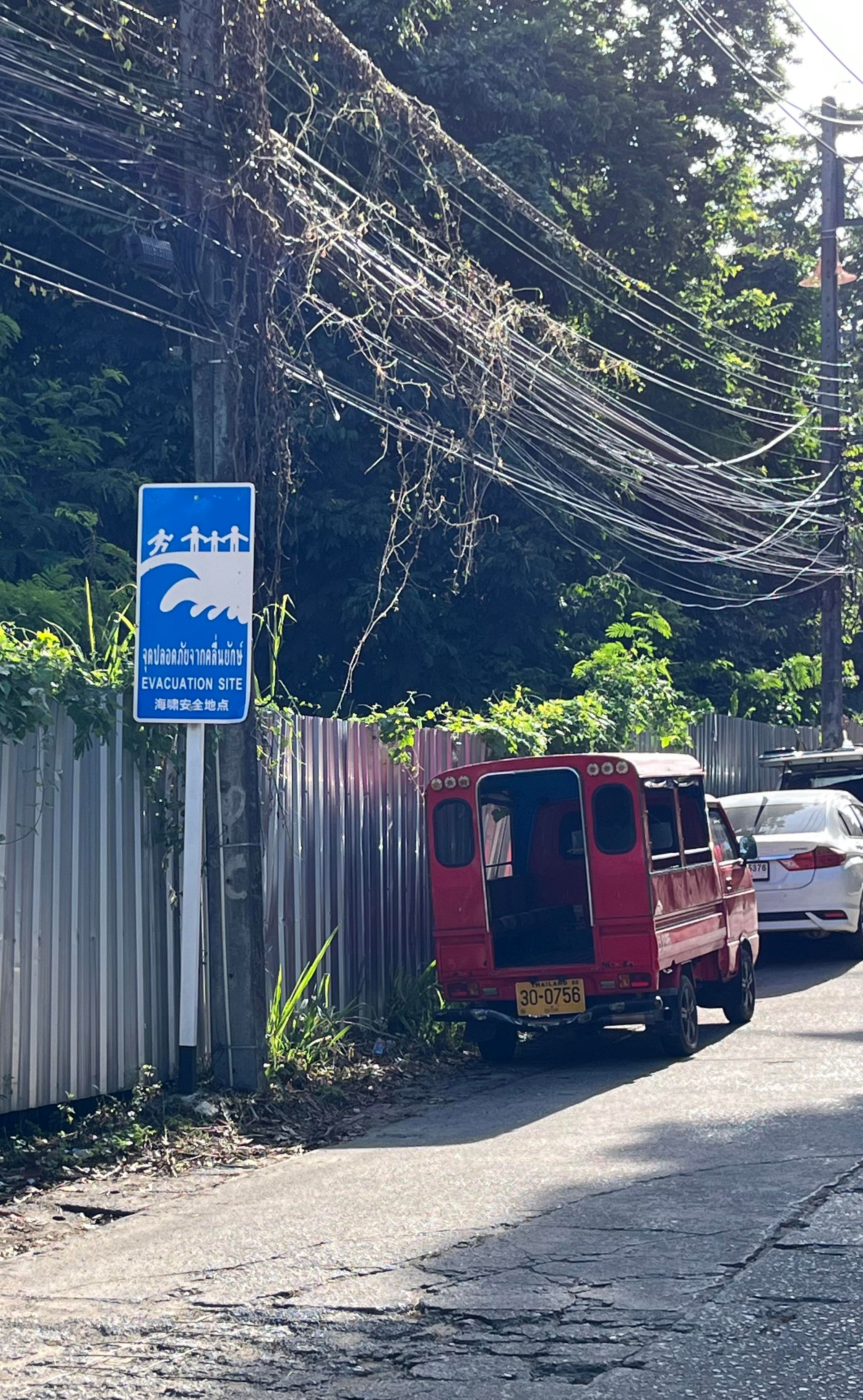 We walked back up the hill to the hotel and saw a sign my mother would be happy to see. We (that is, our hotel) is the Tsunami evacuation site.