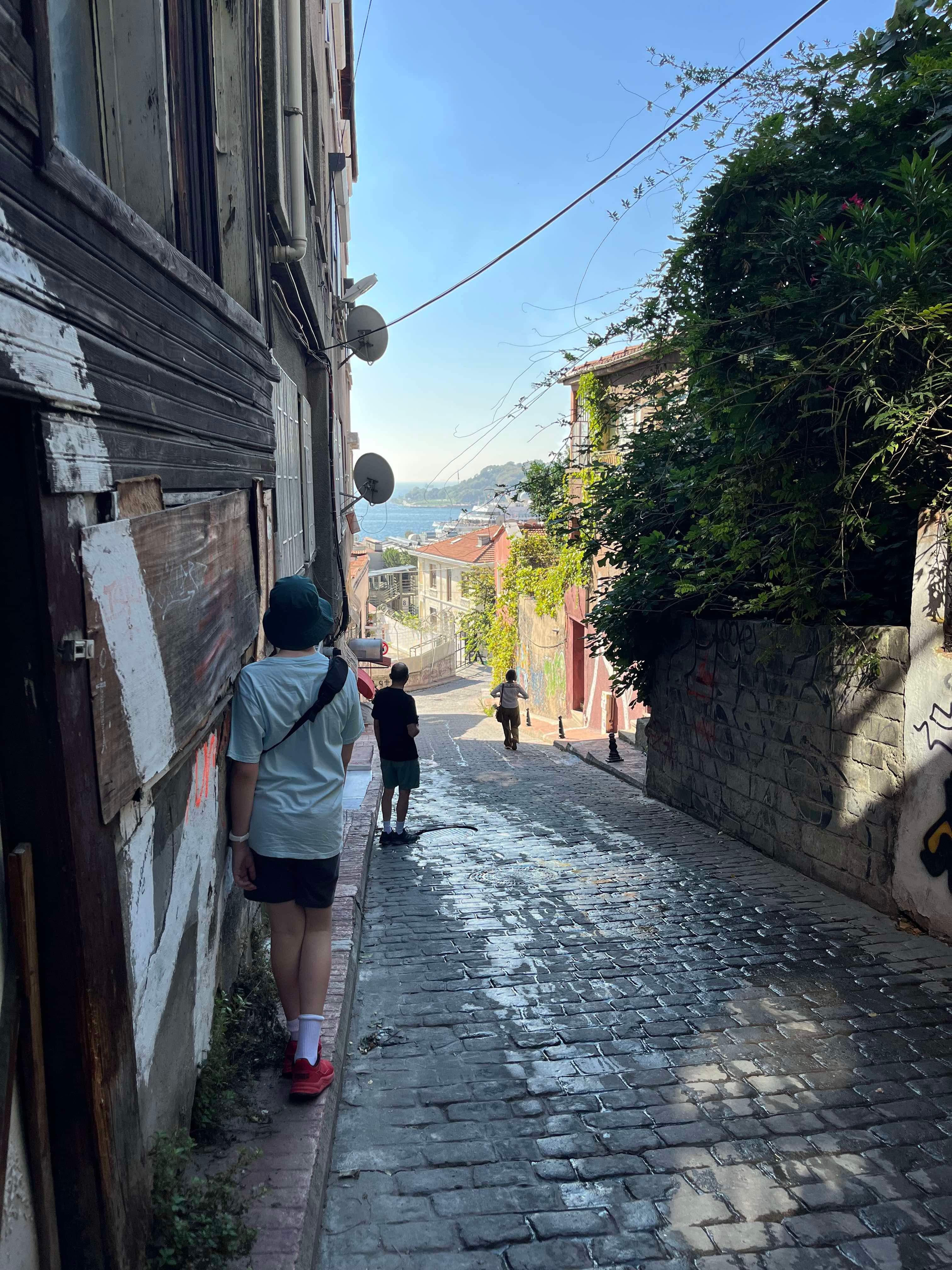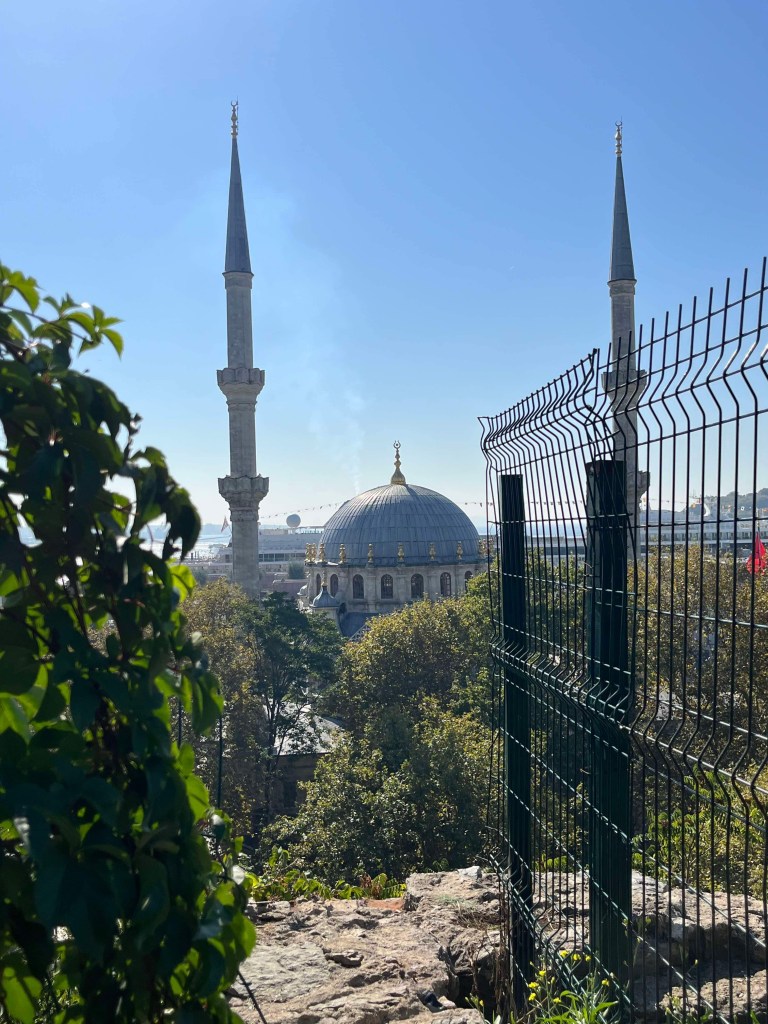 We had a bit of time to kill before catching up with relatives. We’d already walked quite some distance, so we thought a tram ride, look at a mosque, then a ferry ride back might be in order. This was my call and it was a bit flop! The mosque, whilst impressive, was a few km of uphill walk from where the tram had stopped – I could see from the look on Hamish’s face (and the fact he was laying down on the grass) that this wasn’t the time for that. I re-routed us to find the ferry which after another 30 mins of walking, didn’t exist. We caught the tram back to our earlier destination and got some cold drinks before heading back over the Galata bridge to find Stephen and Sharyn. Whilst waiting for them, Hamish sat on the footpath, but a lovely man brought him out a small stool to sit on. Side note: Stephen and Sharon had been upsold an audio guide for a site they visited too! They even had the same useless ear buds!