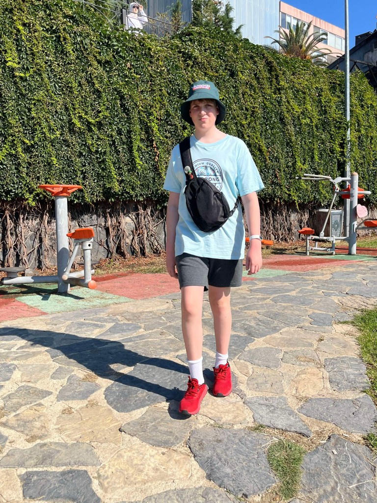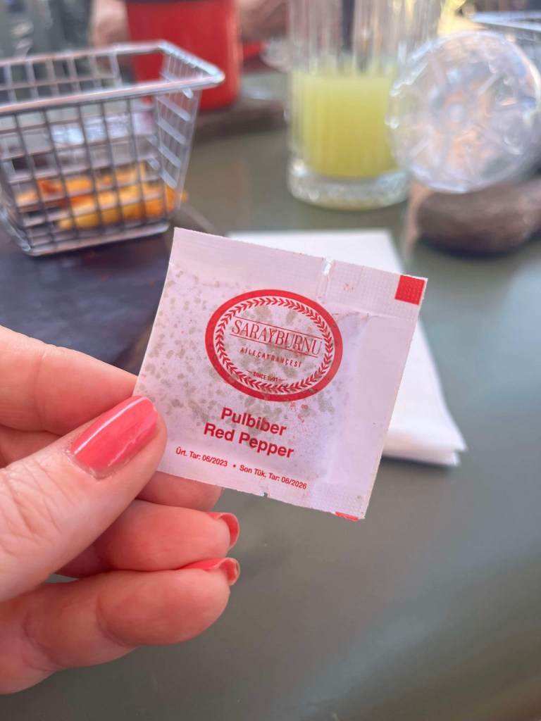 We left the gardens and headed towards the sea, finding a place to eat lunch. Hamish and I had gozleme (spinach for me, mince for Hamish) whilst Rod had a chicken wrap. Hamish and I ordered home made lemonade (which we’ve since discovered is a thing here: it’s sweet and very lemony) and Rod scanned the menu a few times to look for wine. None to be had in this Muslim country – Rod got an OJ instead. Locally, you can add dried red pepper (it’s like paprika) to your meal. Of course I did!