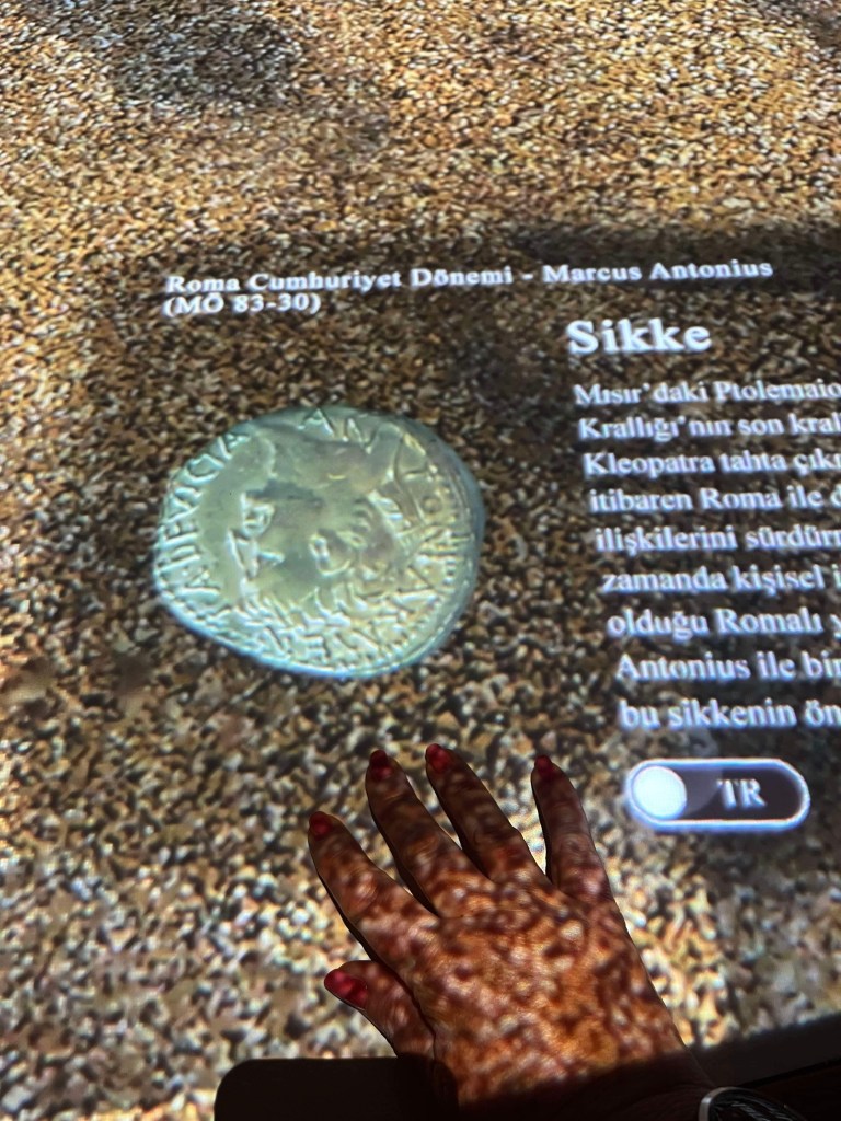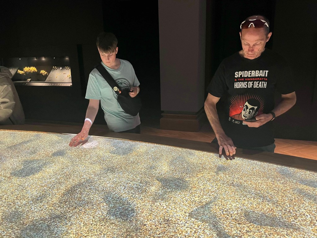 The museum showed the history of the area through many artefacts – some of them tiny, like gold coins and others huge, such as columns and statues. Only a few things were behind glass or barriers, so if we’d wanted to touch artefacts two thousand years old, we could have. Hamish rested at every seat or bench he could find – clearly preparing himself for another day of walking. We found a cool interactive ‘dig’ table, where you ran your hands over the ‘pebbles’ to uncover treasures.