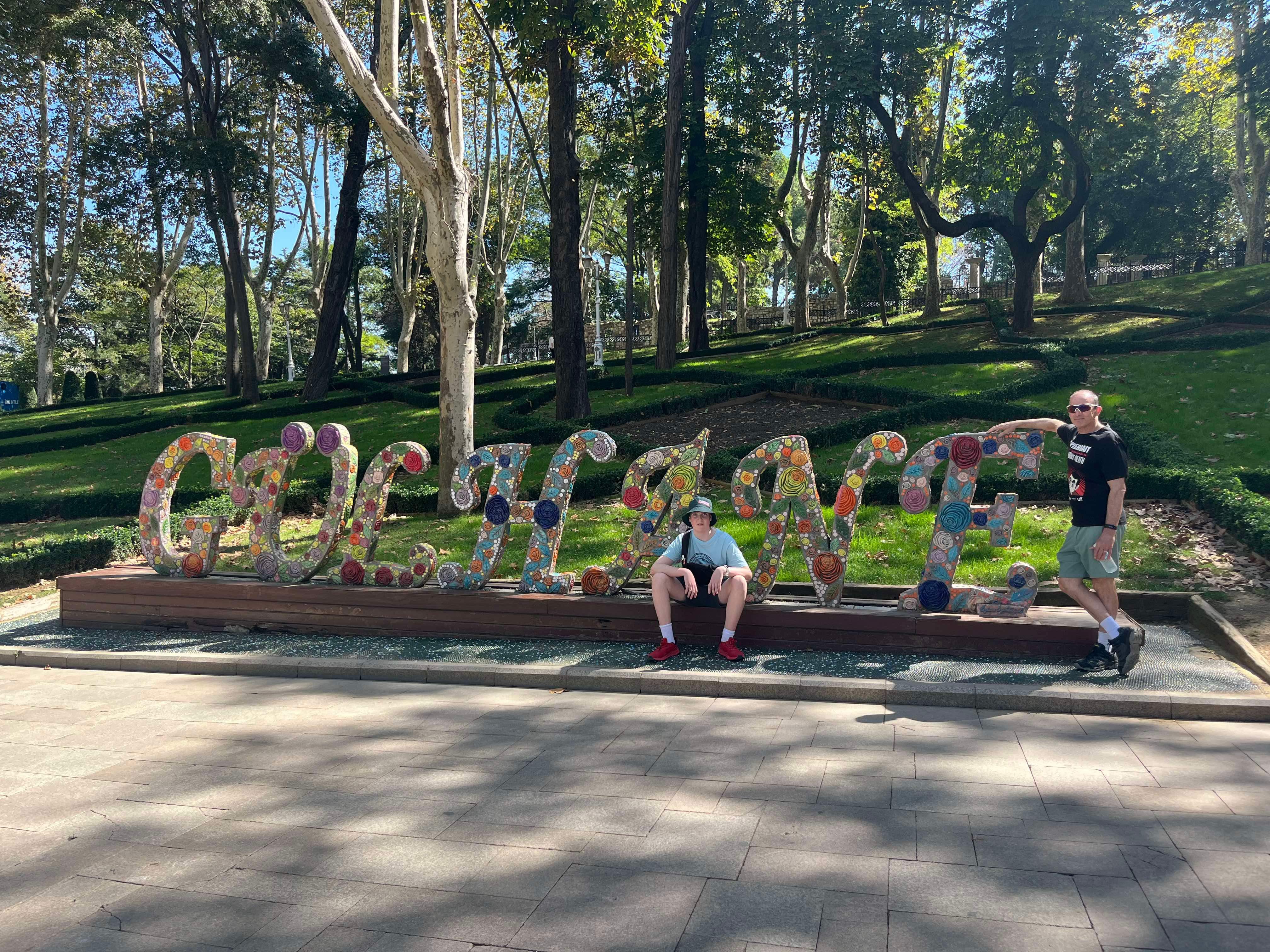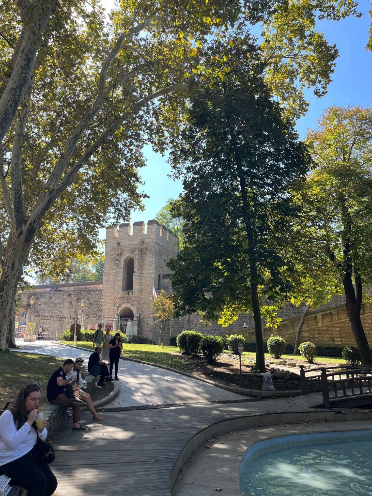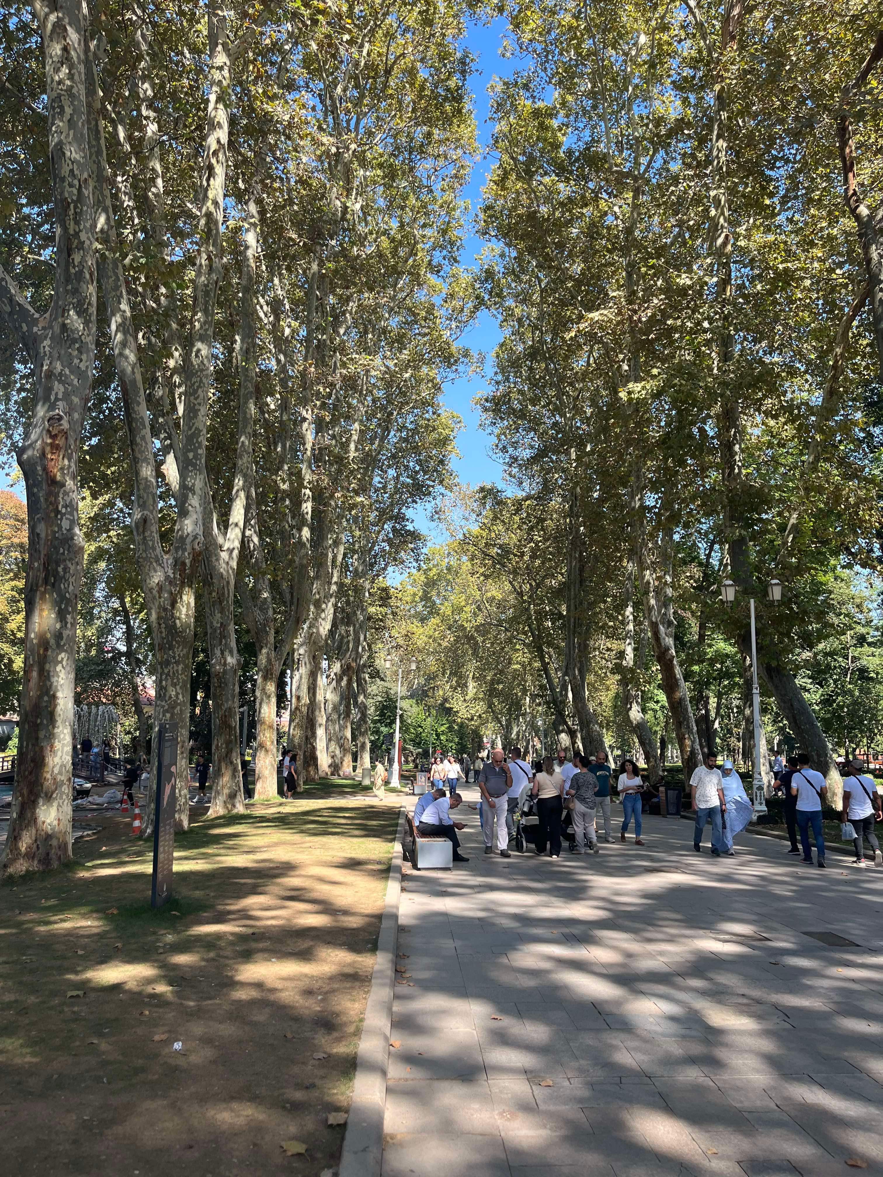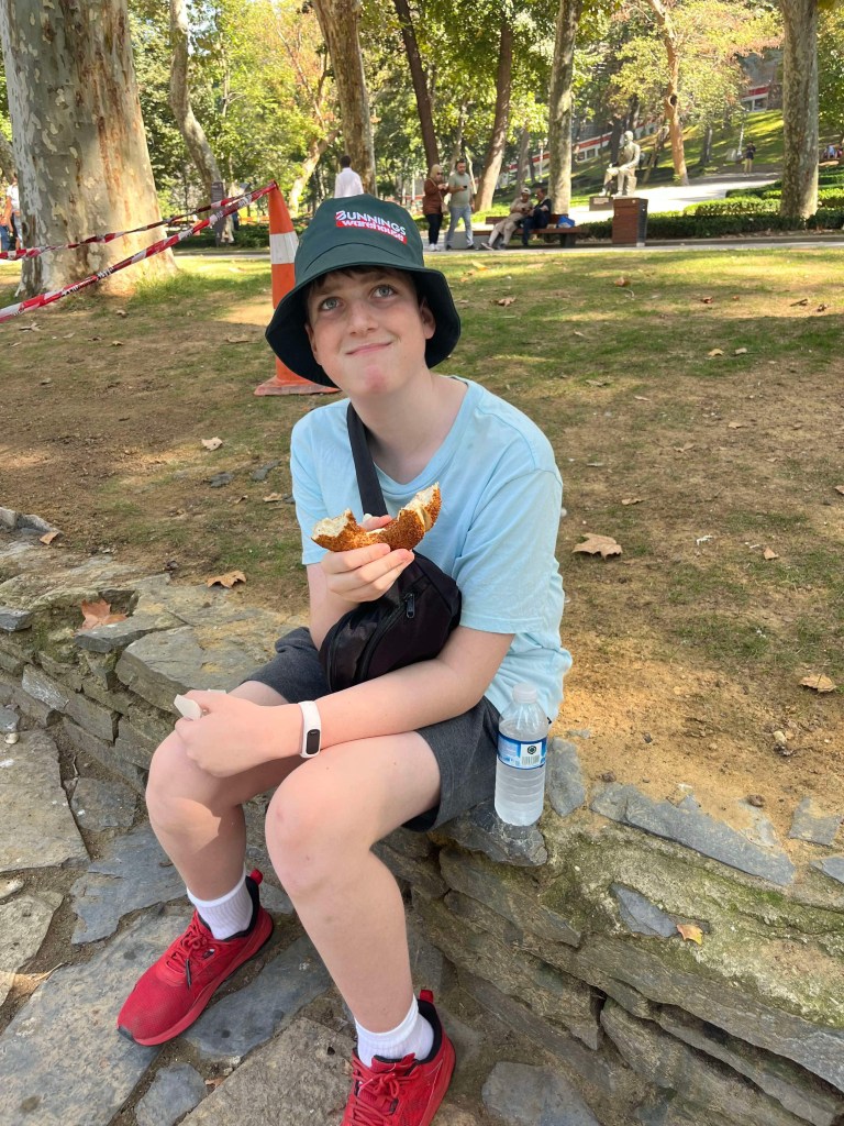 After leaving the museum, we bought water and snacks from a street vendor (Hamish had simit – a round pretzel covered in sesame seeds & Rod had a slightly sweet cinnamon bread wedge, which I can’t find the name of) and sauntered through the absolutely gorgeous Gulhane park. This park used to be part of the palace gardens, but were opened up to the people of Istanbul in 1912. It was hard to believe we were in a bustling city of 15 million people; it was peaceful, lush and cool. As we were walking along, a lady said to Hamish, “You’re Australian aren’t you” I guess the Bunnings hat is a bit of a giveaway.