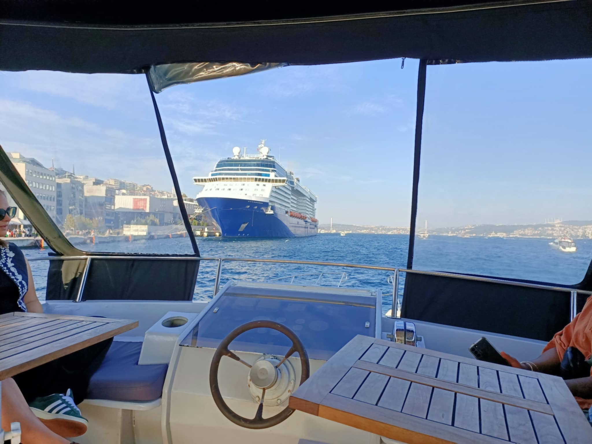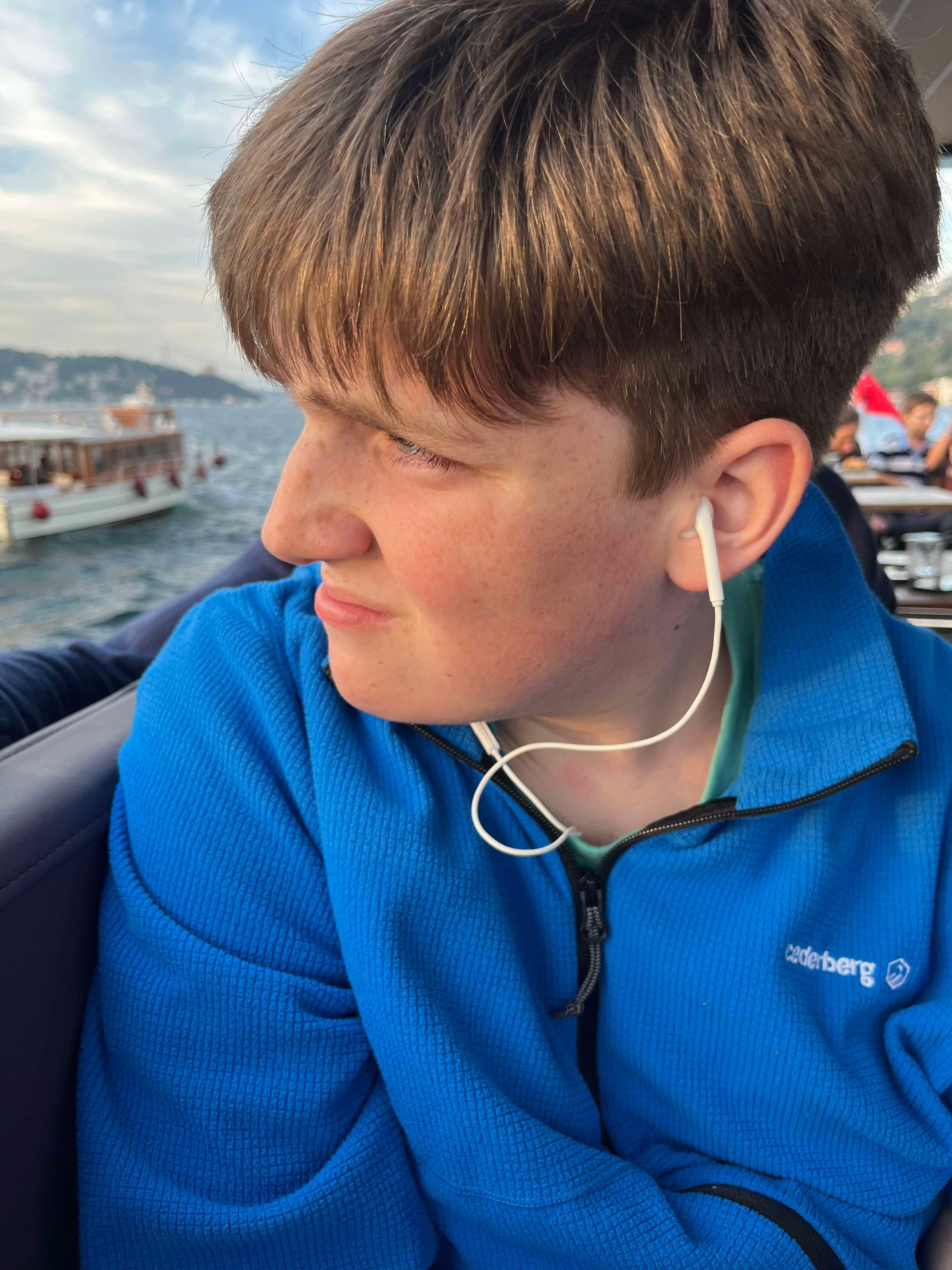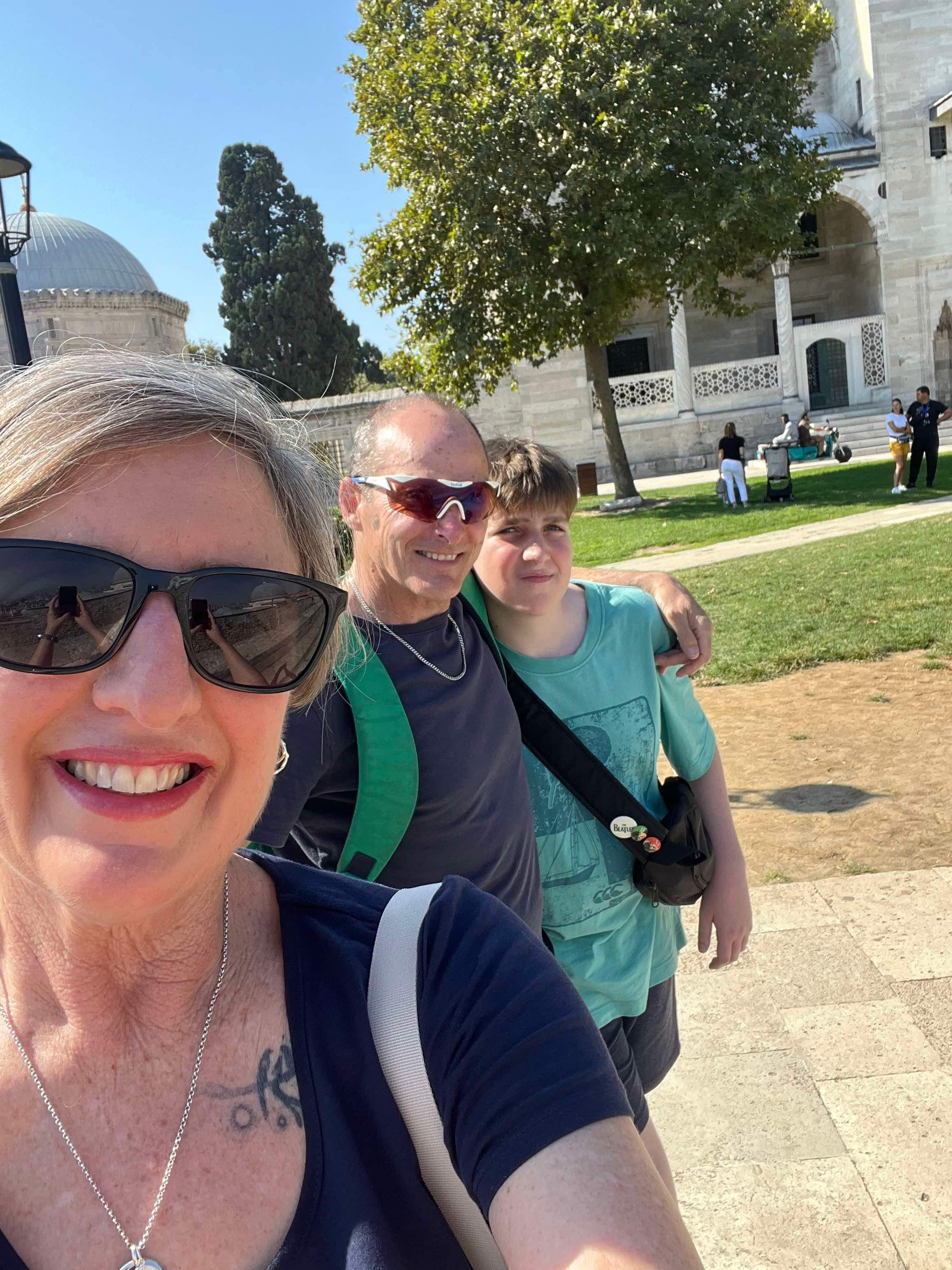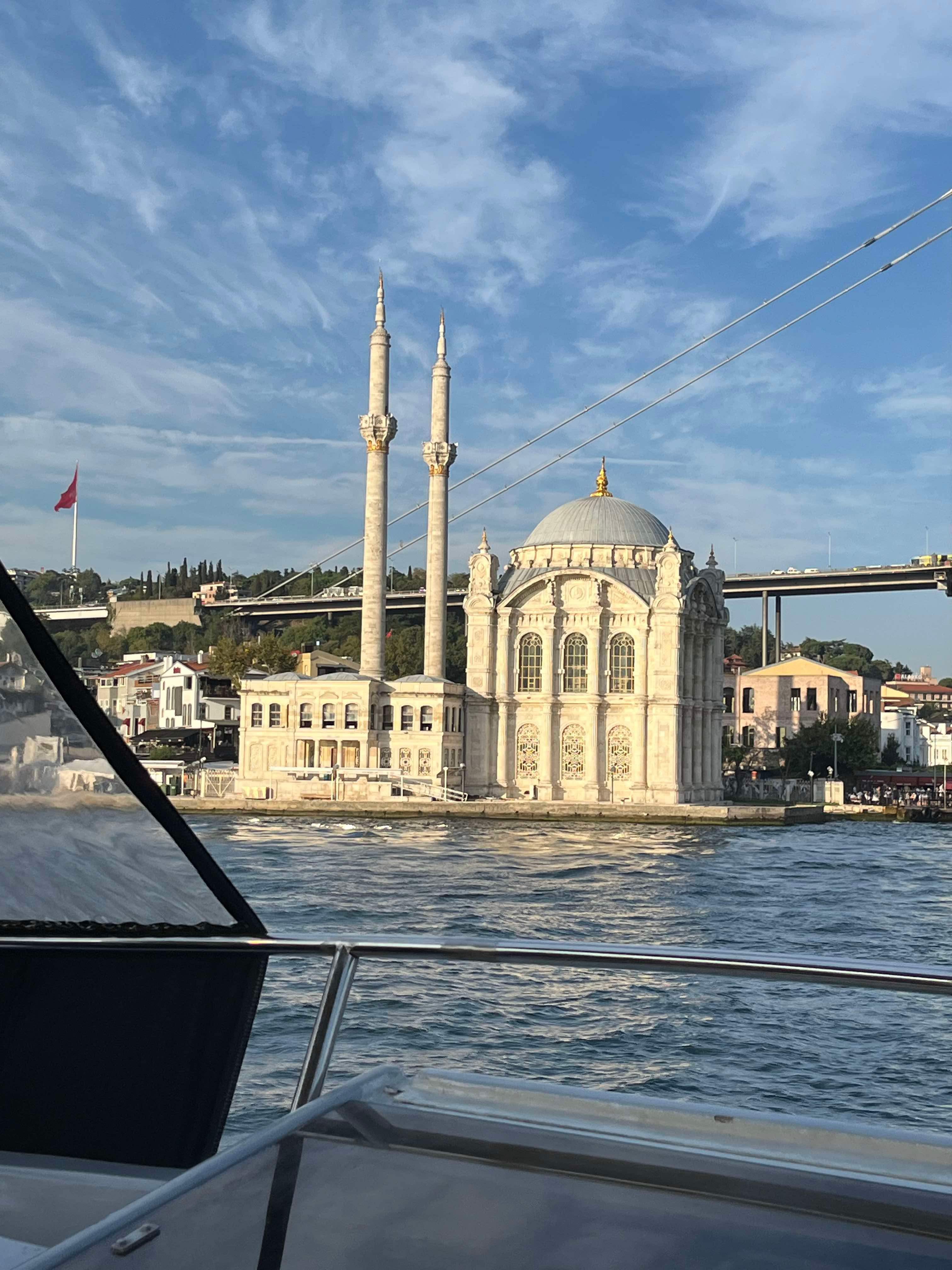 Saturday we decided to visit Suleymmaniye Mosque (little sister of the more famous Blue Mosque) and walk around the Grand Bazaar. The mosque was beautiful and the views over Istanbul impressive. We needed to cover our legs (all 3 of us) and I put on a head scarf. After the mosque, I got us a bit lost, so we didn’t manage to find the Bazaar. Never mind, we headed home for an afternoon rest as we had booked a Bosphorus sunset cruise for the evening.