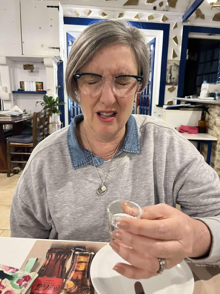 Food. The food is fresh and we have enjoyed the local cuisine: gyros (which isn’t actually a wrap, it’s meat and salad on a plate with tzatziki and flat bread) veal casserole, seafood risotto, fish soup and a dish that Rod said tasted like meatball parmesan, chicken with eggplant and capsicum.