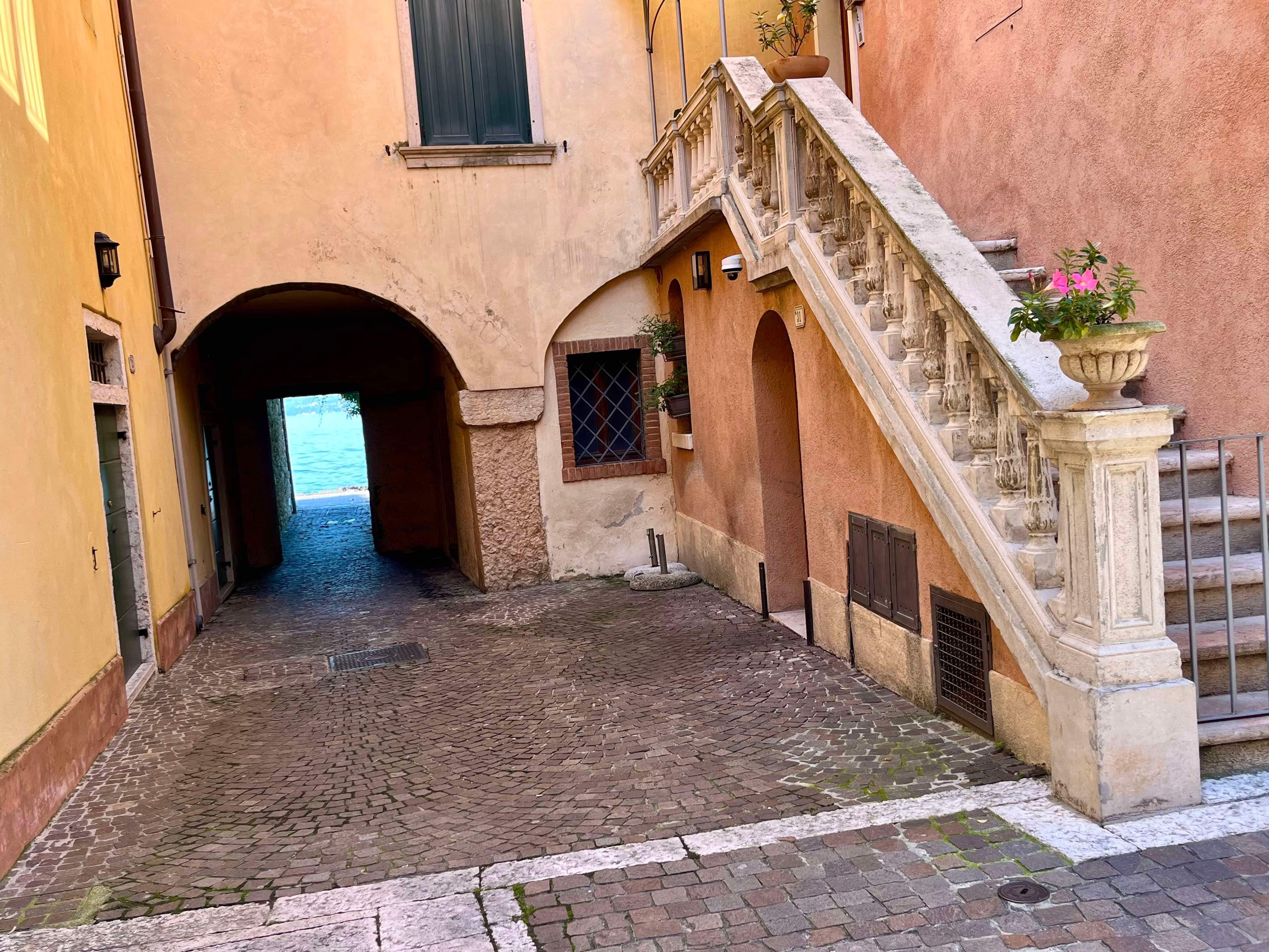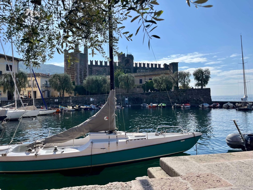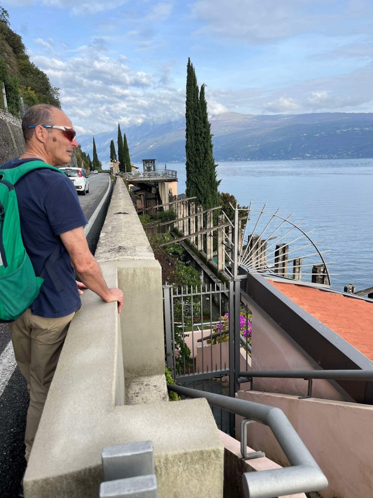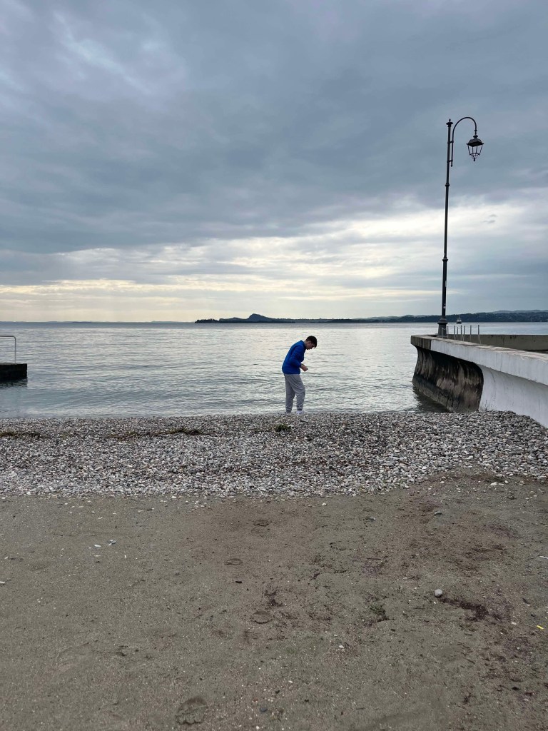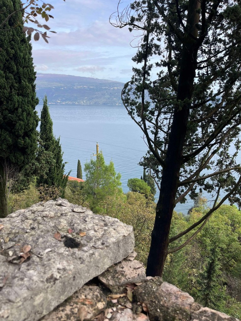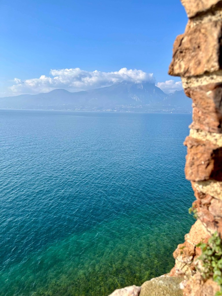 Tuesday. Rod has been wistfully watching the ferries cross each day, so it was only fair we explore the Eastern side of the lake by catching a ferry to Torri del Benaco. Torri is another small village and we’d done zero homework except for Rod checking out the ferry timetable. The ferry ride was smooth and in 30 minutes, we were walking off the gangway. We walked to our left and found another castle: The Scaliger castle, built in 1383 (although Rod tells me there was a castle there prior to that from the 10th century). The castle/museum was closed between 1230 and 1430 (typical Italy, closed for lunch) so we continued sauntering along the waterfront, which is a very pleasant way to spend some time. Plenty to see: water birds, buildings, statues, boats, mountains and the clearest water you can imagine. We ate lunch at a restaurant right on the lakefront and had pizza and pasta, and some refreshing rose wine (it seems to be sparkling here? – no complaints from us though!). Hamish fed the ducks with grissini and once again, we reminded ourselves how fortunate we are to be living this travelling life.