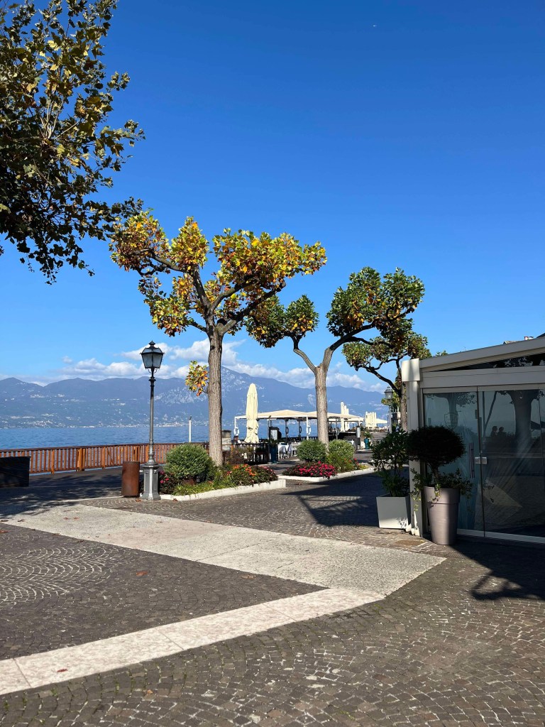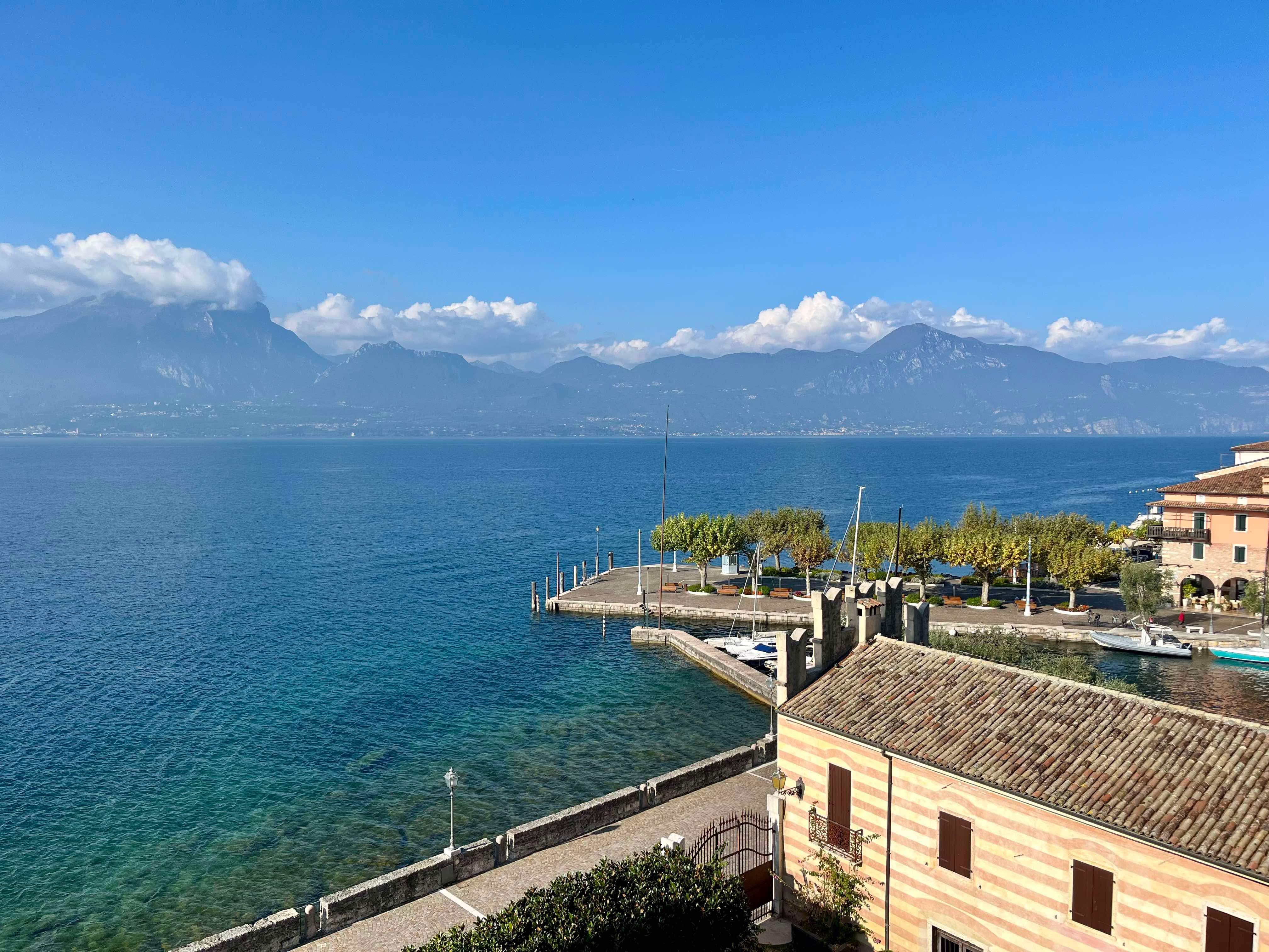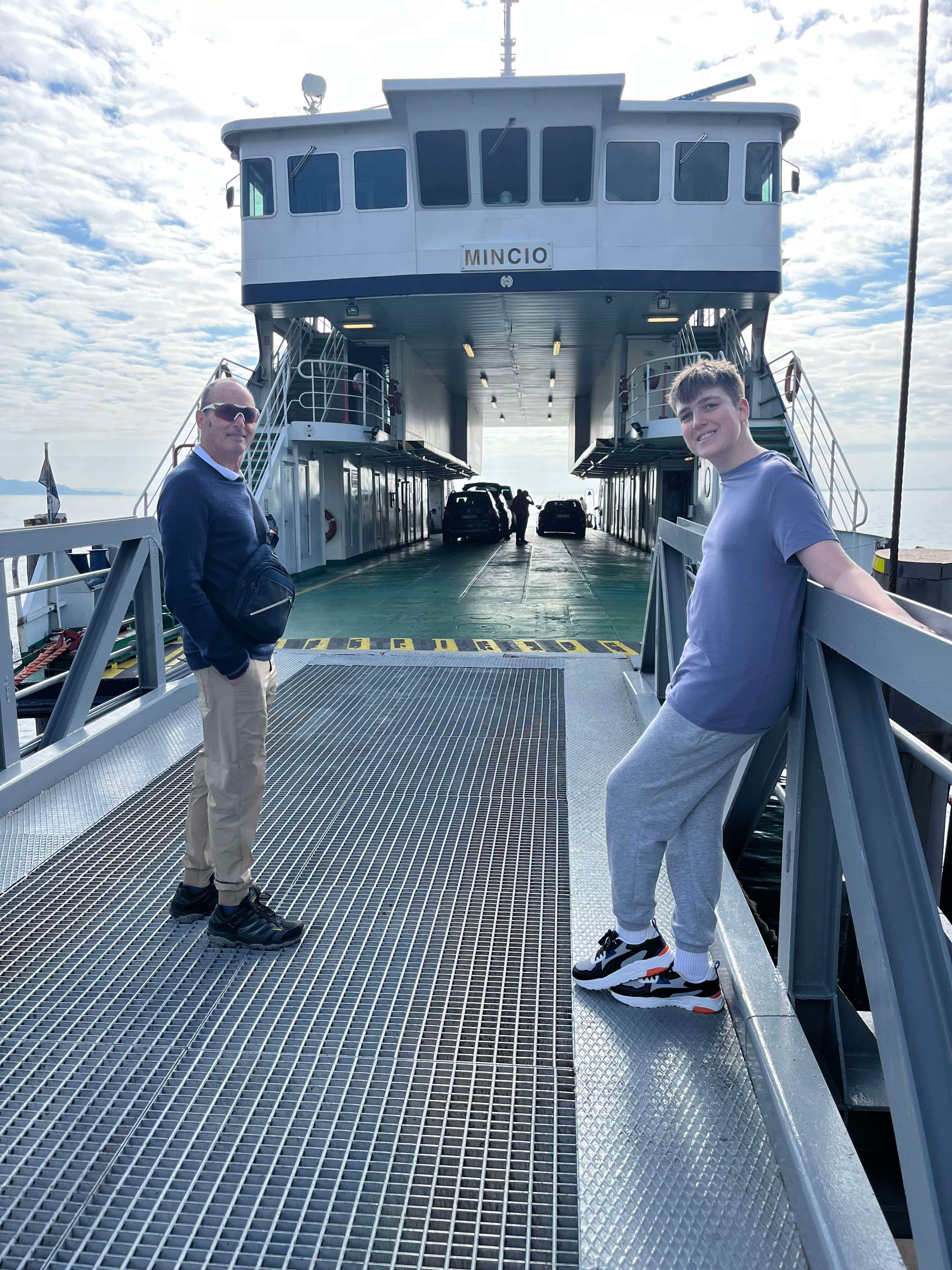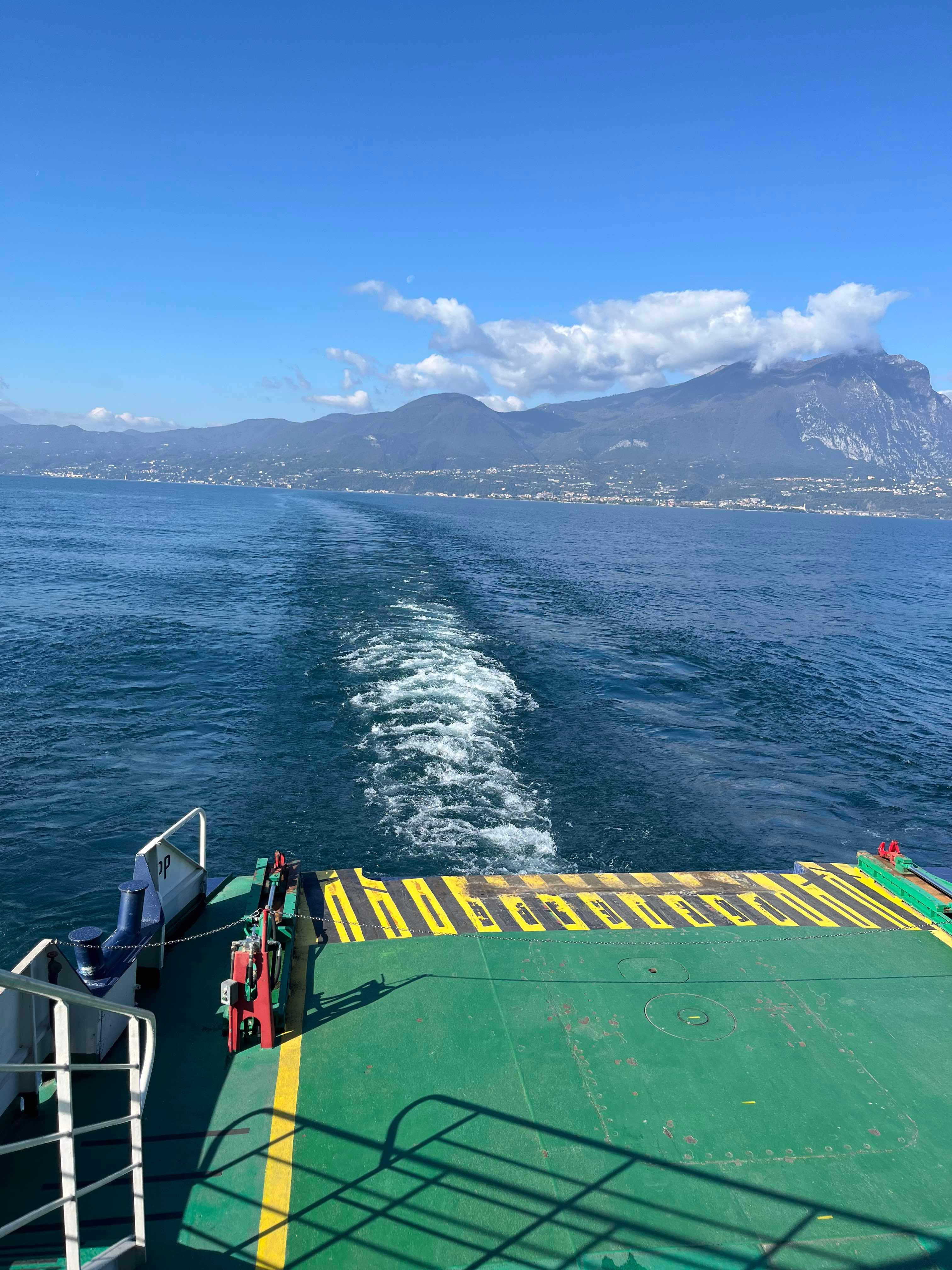 Tuesday. Rod has been wistfully watching the ferries cross each day, so it was only fair we explore the Eastern side of the lake by catching a ferry to Torri del Benaco. Torri is another small village and we’d done zero homework except for Rod checking out the ferry timetable. The ferry ride was smooth and in 30 minutes, we were walking off the gangway. We walked to our left and found another castle: The Scaliger castle, built in 1383 (although Rod tells me there was a castle there prior to that from the 10th century). The castle/museum was closed between 1230 and 1430 (typical Italy, closed for lunch) so we continued sauntering along the waterfront, which is a very pleasant way to spend some time. Plenty to see: water birds, buildings, statues, boats, mountains and the clearest water you can imagine. We ate lunch at a restaurant right on the lakefront and had pizza and pasta, and some refreshing rose wine (it seems to be sparkling here? – no complaints from us though!). Hamish fed the ducks with grissini and once again, we reminded ourselves how fortunate we are to be living this travelling life.