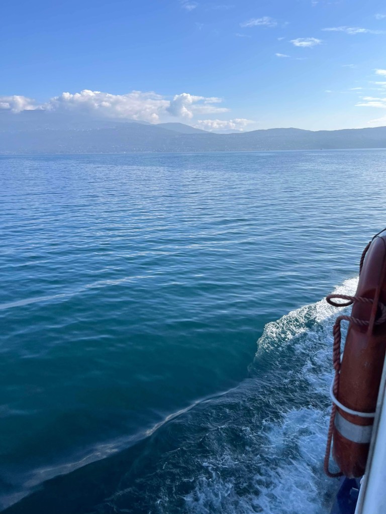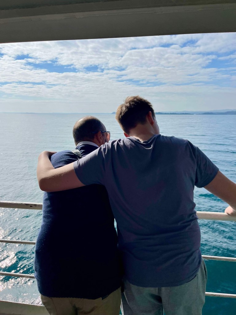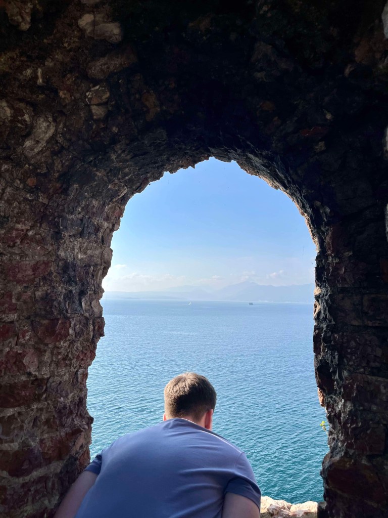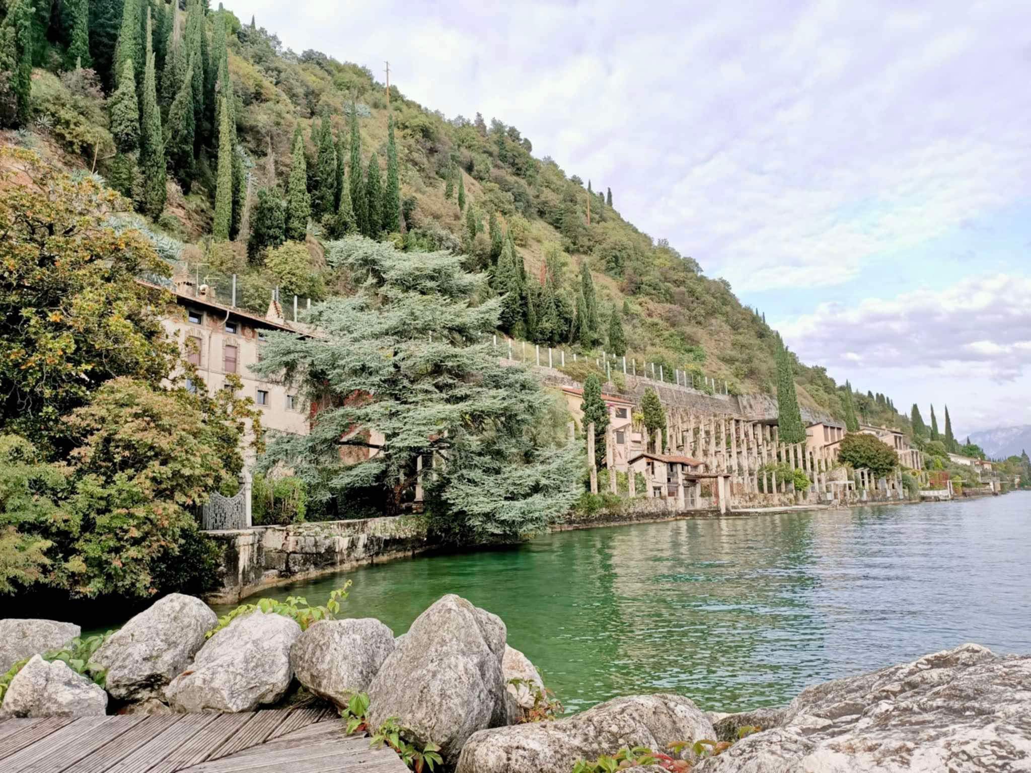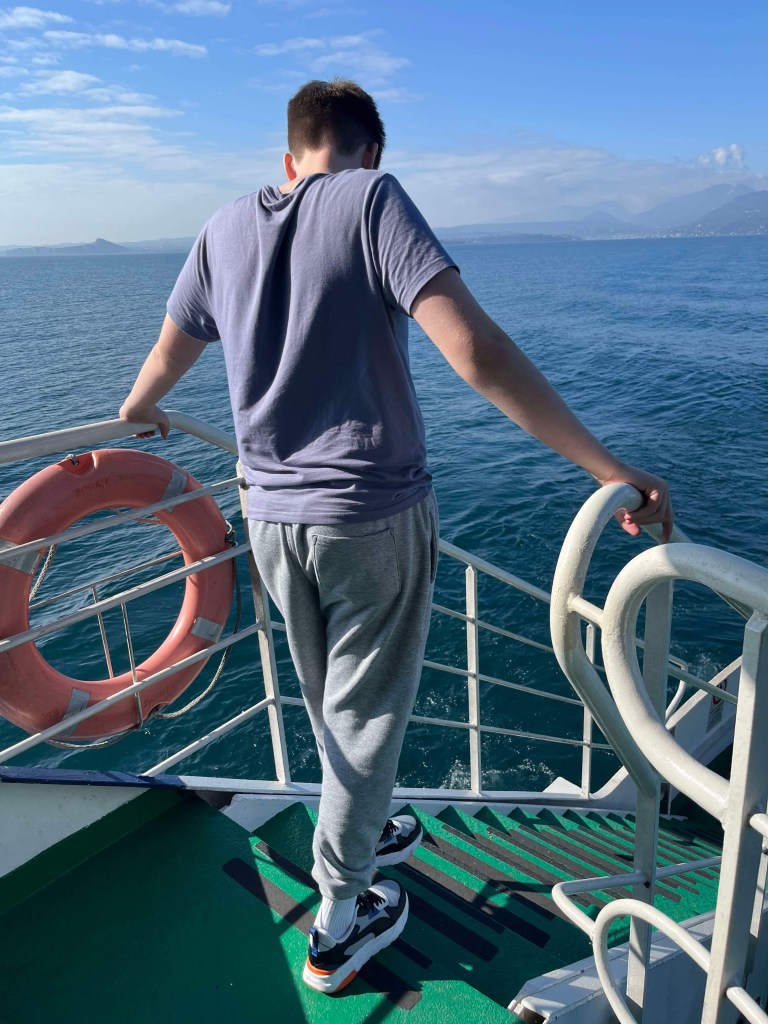 Tuesday. Rod has been wistfully watching the ferries cross each day, so it was only fair we explore the Eastern side of the lake by catching a ferry to Torri del Benaco. Torri is another small village and we’d done zero homework except for Rod checking out the ferry timetable. The ferry ride was smooth and in 30 minutes, we were walking off the gangway. We walked to our left and found another castle: The Scaliger castle, built in 1383 (although Rod tells me there was a castle there prior to that from the 10th century). The castle/museum was closed between 1230 and 1430 (typical Italy, closed for lunch) so we continued sauntering along the waterfront, which is a very pleasant way to spend some time. Plenty to see: water birds, buildings, statues, boats, mountains and the clearest water you can imagine. We ate lunch at a restaurant right on the lakefront and had pizza and pasta, and some refreshing rose wine (it seems to be sparkling here? – no complaints from us though!). Hamish fed the ducks with grissini and once again, we reminded ourselves how fortunate we are to be living this travelling life.
