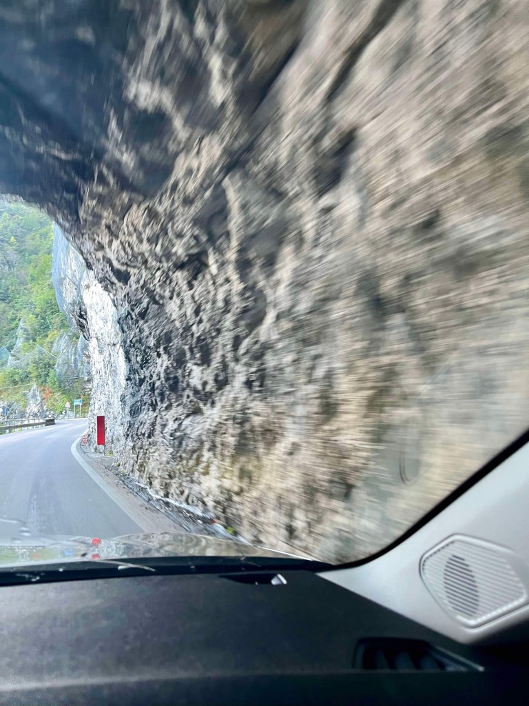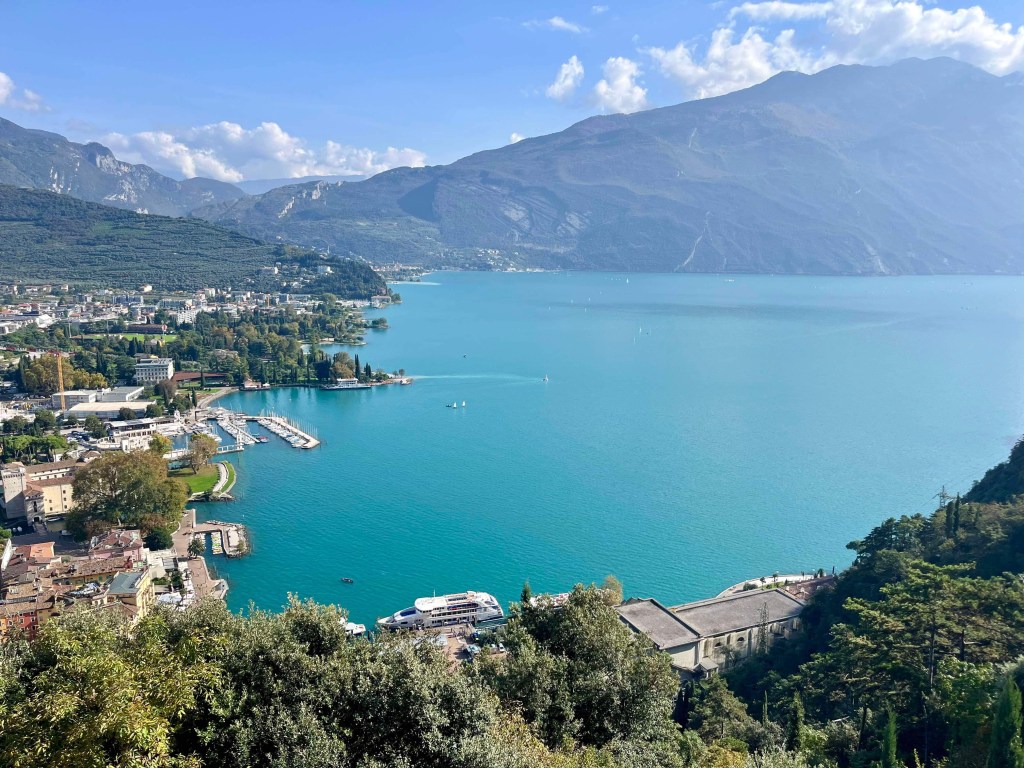 Monday. Our plan for the day was to drive to the northern most town of the lake (Riva del Garda) for some exploration and lunch. The roads (and Italian drivers) have really tested Rod’s nerve and skill – the road was multi-directional, hugged the coastline and largely consisted of tunnels of various form: new machine built (well lit, wide with good drainage), old machine built (pointed dome shape, cut out arches with views of the Lake, narrow lanes with varying degrees of drainage) and hand built (dark, damp cave-like and narrow).