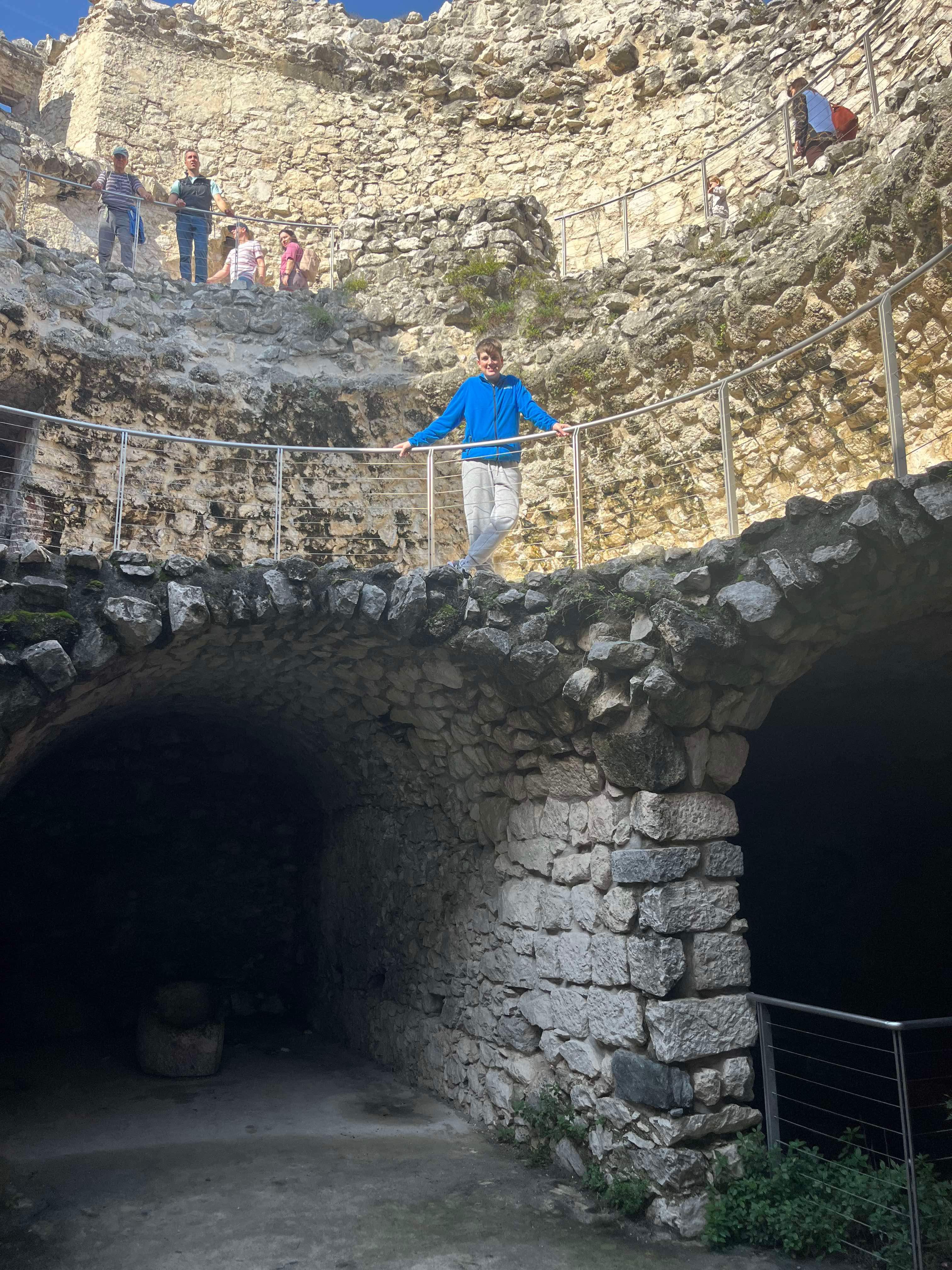 We lined up at precisely 230pm for the castle doors to be unlocked. The goal for Hamish and I was to visit the ramparts. The ferry was due to leave at 305pm so we dutifully walked through the other displays (fishing, olive oil production, something else…) before reaching the top of the castle, grabbing some quick pics, peering over the edges, before climbing the narrow stair case back down, collecting Rod on the floor below, then heading to the ferry. We made it with time to spare! Gelato was our reward back in Toscolano-Maderno, as well as the discovery of another gorgeous little church. We have seen 5 perfectly preserved, intricately decorated, old churches in Lake Garda, including one with a crypt – they have been very impressive, more happy accidents.