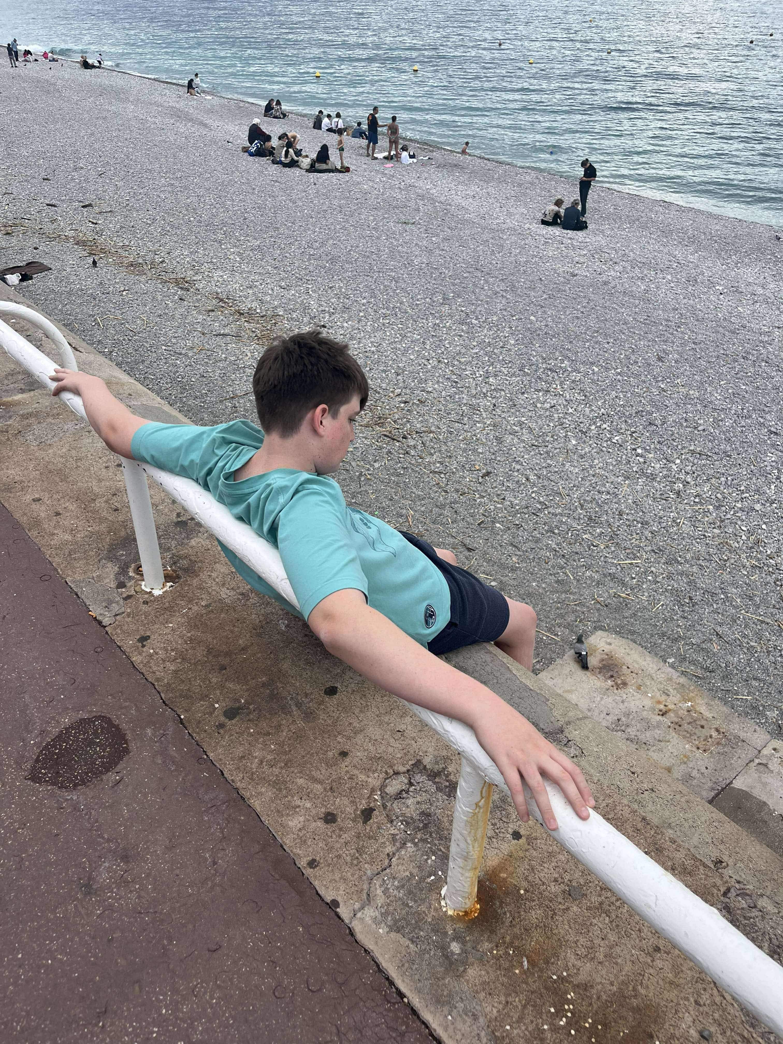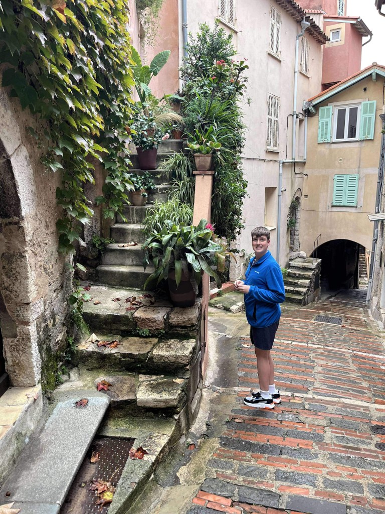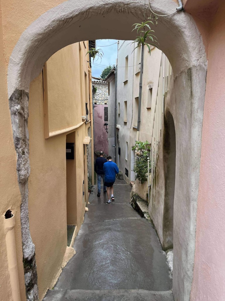 Thursday morning we headed to the seaside town of Menton to print a document needed back in Australia. This is never an easy thing to do when you’re overseas and you don’t speak the local language. Thankfully the gentlemen at the store spoke excellent English, so it wasn’t too stressful in the end (even after Rod bravely said, “You ask…”). With our paperwork sorted, we headed to the coast to walk along the boulevard. It was OK, but is probably much nicer in summer. We walked through a small pedestrian tunnel under a trainline which smelled very strongly of pee – Hamish held his breath and practically ran through! We cut this trip short and headed to Nice.