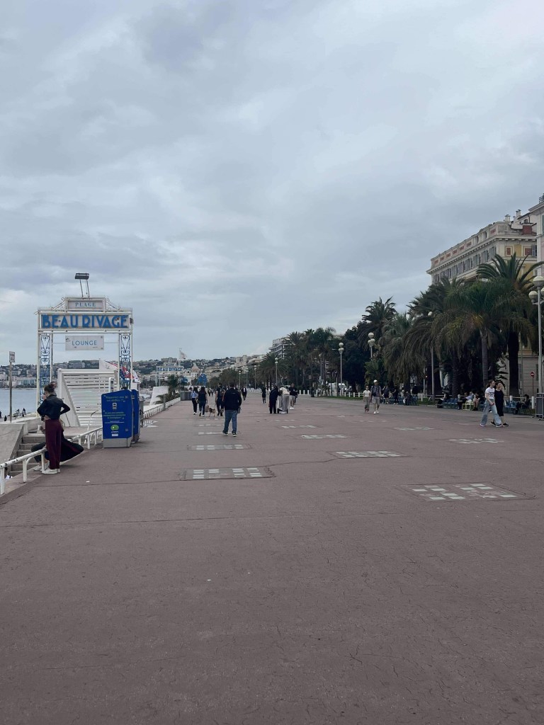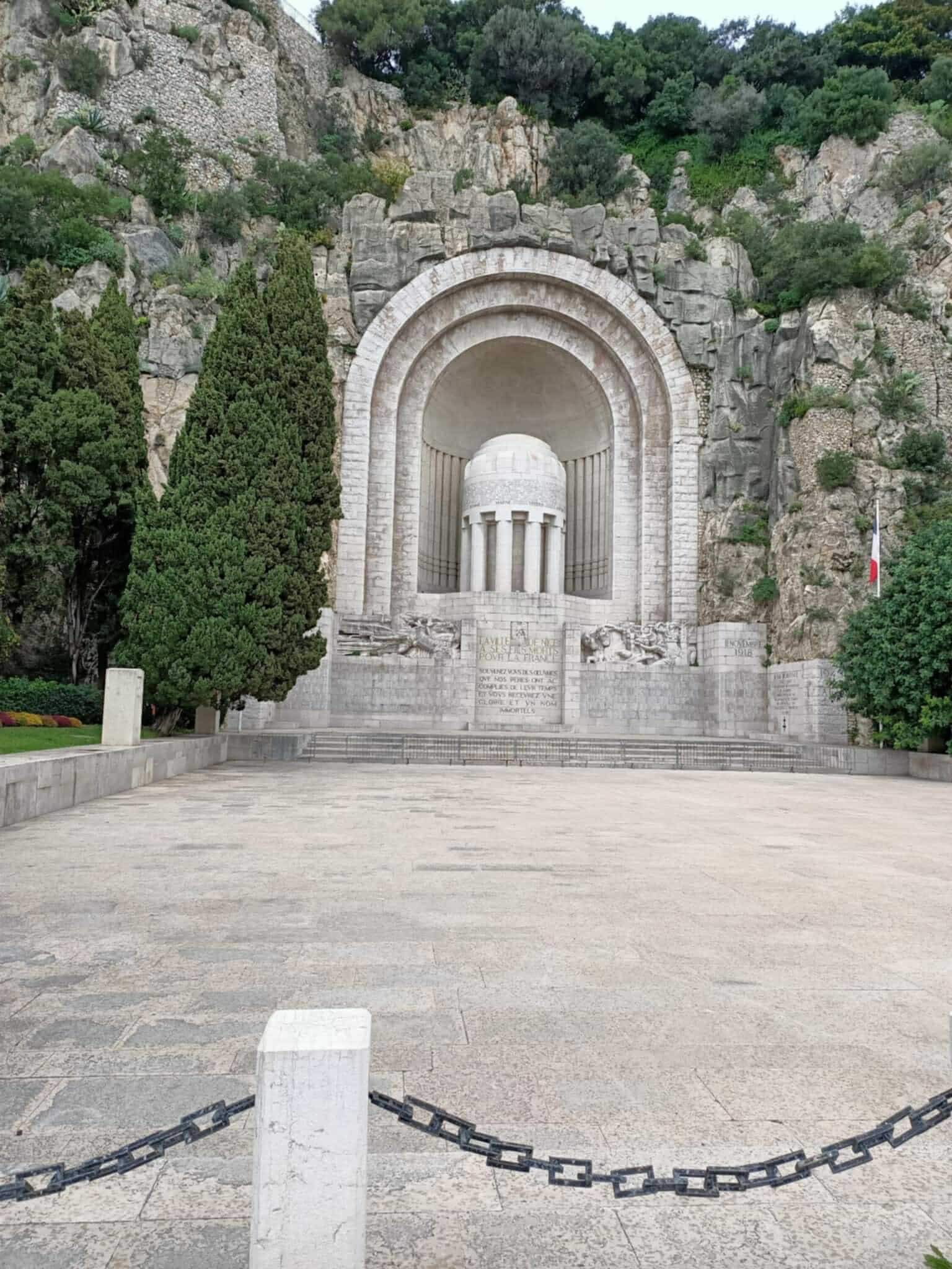 Traffic was wild but we found an underground park which put us in a great position. We didn’t have a plan here, but as it turned out we covered quite a bit of ground and found some lovely sights, whilst walking along the Promenade des Anglais. These included markets, an amazing war memorial built into the cliff-face (where they kindly ask you in two languages not to play ball games) and delicious food from a local boulangerie (bakery).