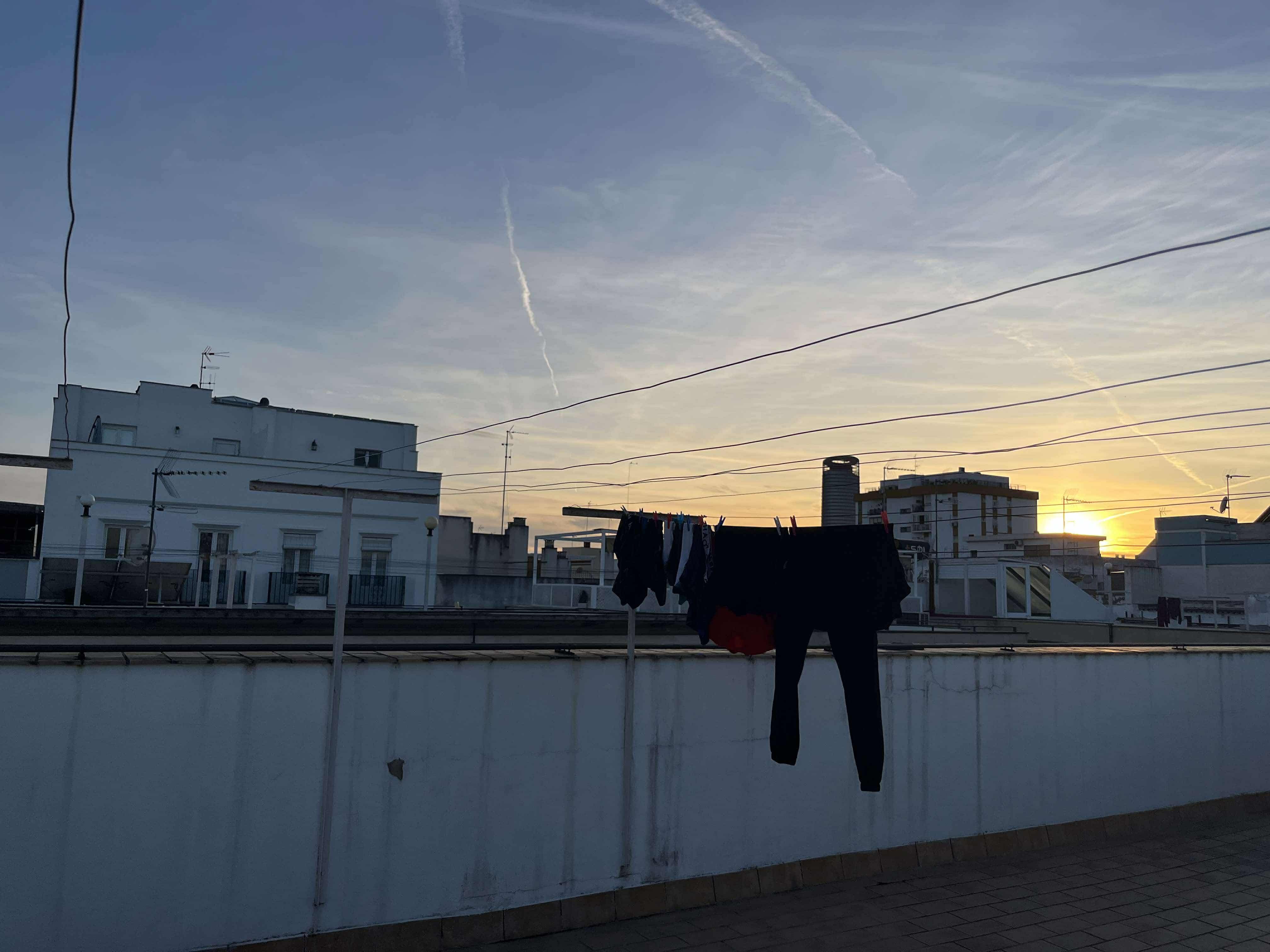 We repeat our late lunchtime routine (check on Hamish, eat, siesta) then walk around our neighbourhood to find a church (it’s actually a convent which we can see from our roof) whose bells are manic! Irregular tolling, and fast as if the Nuns are running late! We find this, get Panadol (which comes in 1g tablets and costs about 4 euro ($6) for 10 tablets – very expensive!) and meander home through the streets of our suburb.