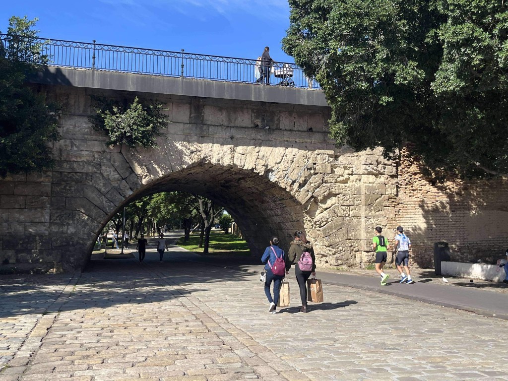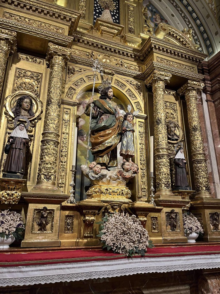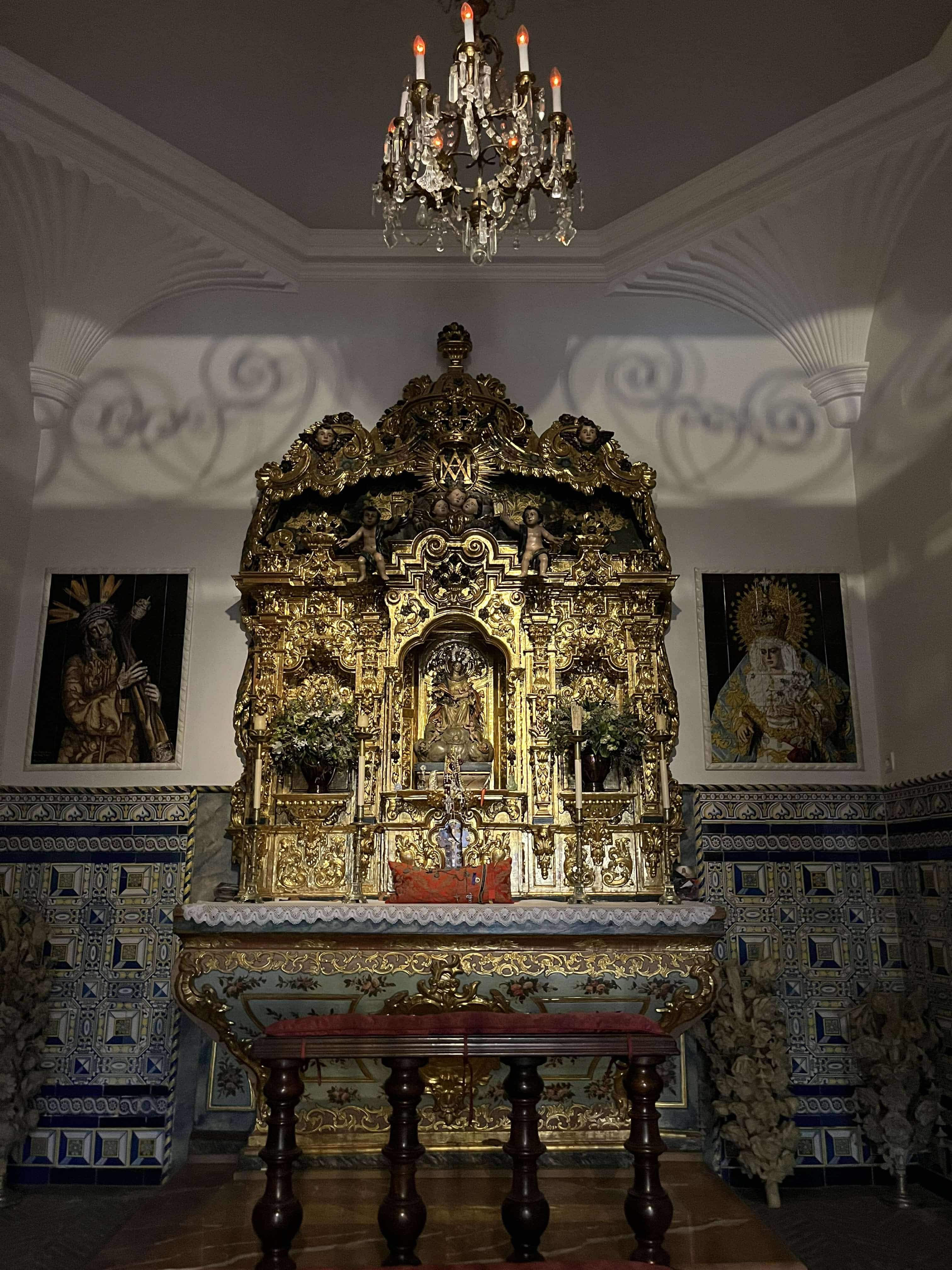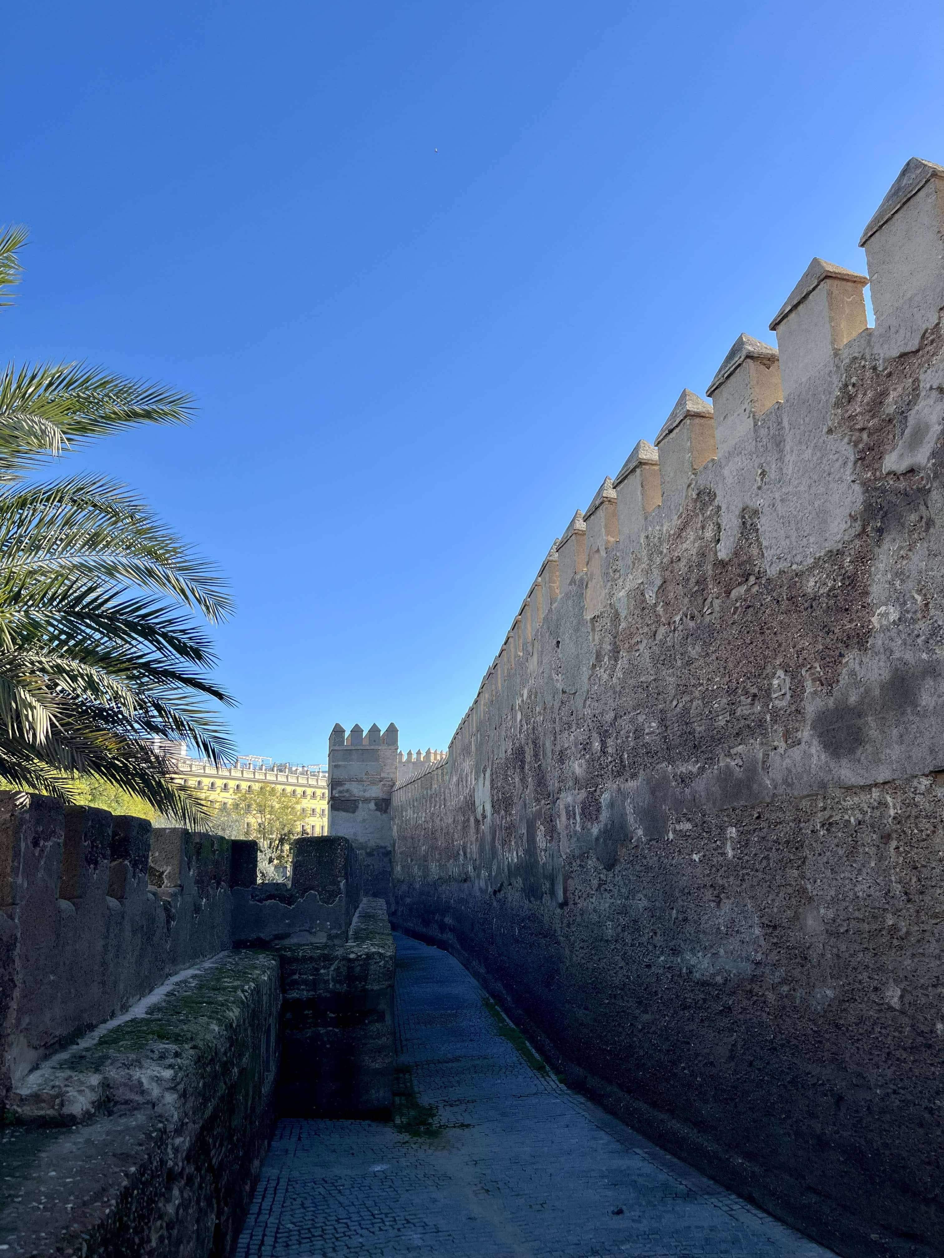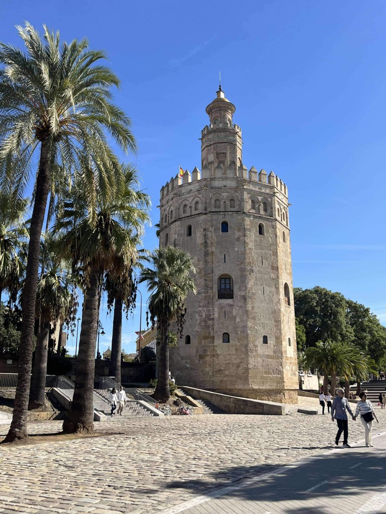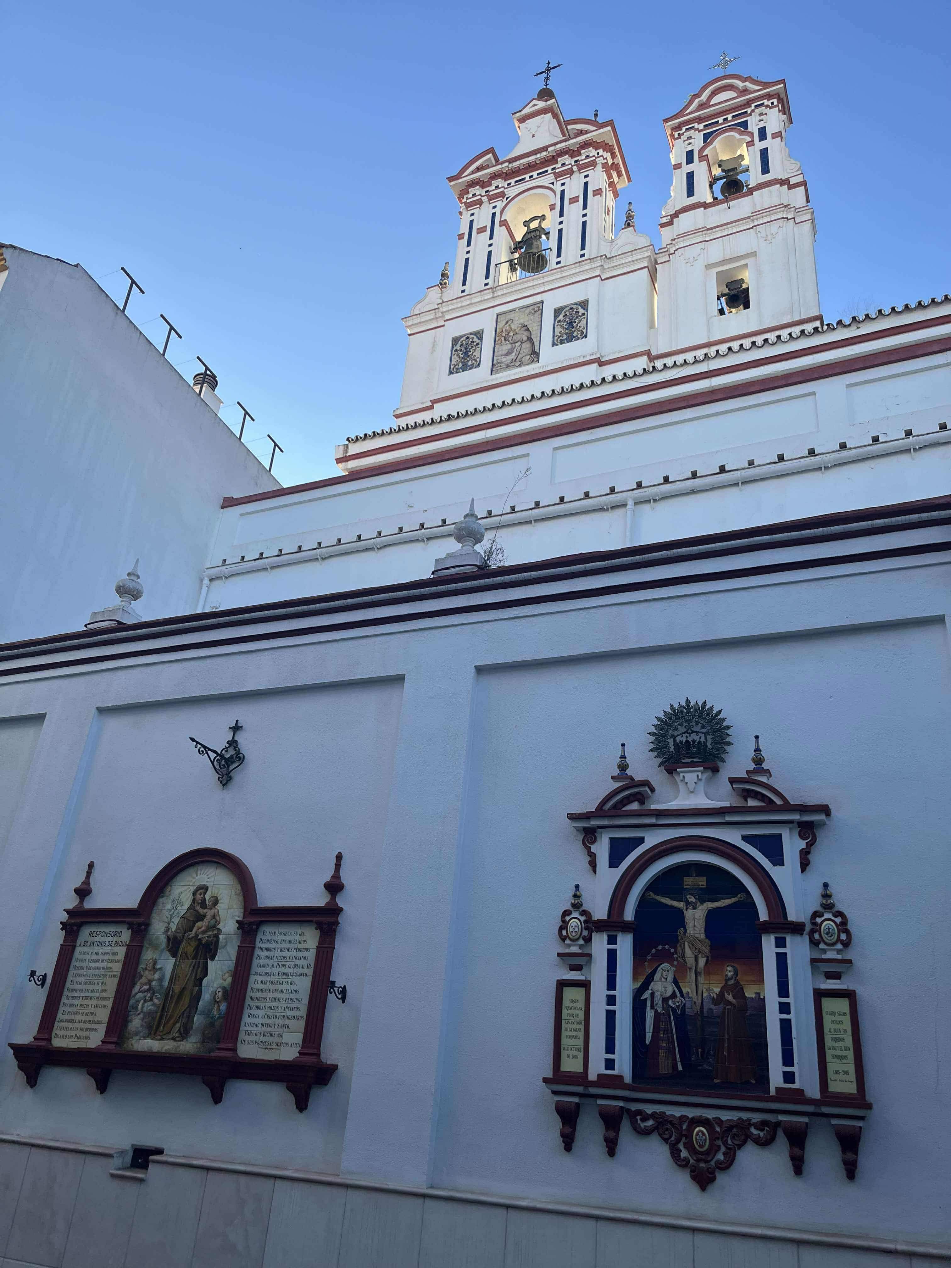 Hamish’s head cold has worsened overnight, but you’ll be pleased to know he was well enough to stay home on the couch and play games on his Switch. Rod has a plan that involves the two of us exploring the local area, so that if Hamish needs us, we’re close by. We find the Macarena Church, which is (free) incredibly ornate inside, the ancient city walls and the Parliament of Andalucia before we stop for a late morning tea. Andalucia is the name given to this province and the green and white striped flag is the Andalucian flag.