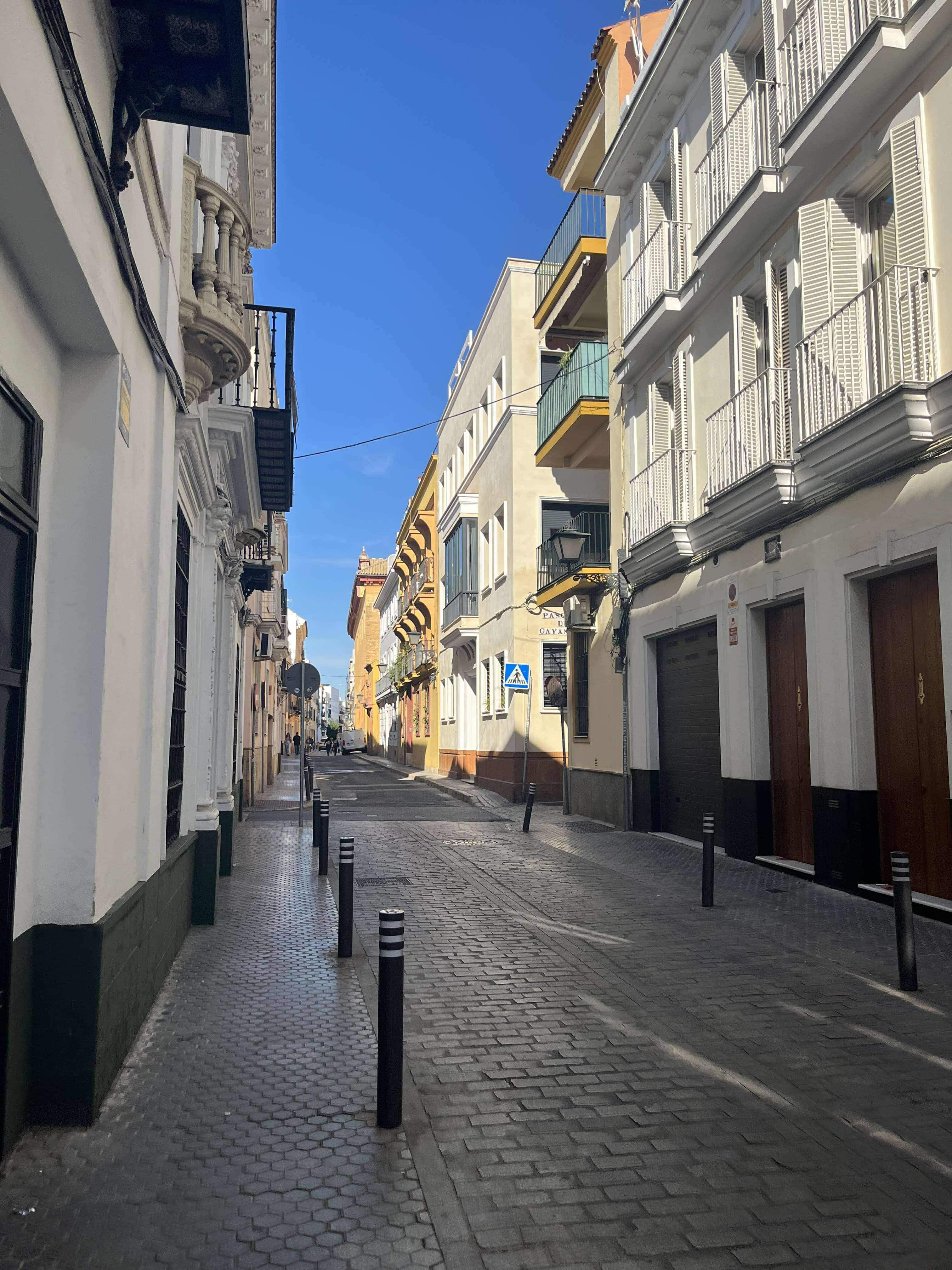 We arrived in Sevilla last Saturday afternoon after an easy 5 hour drive from Madrid. The roads were wide and in good condition with no tolls; actually we’ve not had a toll since leaving Andorra. The city of approximately 1 million people lies in the SW corner of Spain, an hour and a half to the Portuguese border in the Gulf of Cadiz (if we kept going West, we’d end up in Washington DC). Until this week, we called this city Seville. But it’s actually written as Sevilla and pronounced Ce-ville-ya (we are so cultured…). Our apartment is in a block with a narrow, paved road leading to the underground park in the suburb of San Lorenzo. Initially it’s hard to gauge what’s around, but we unpack and head to get some groceries to give us our bearings.