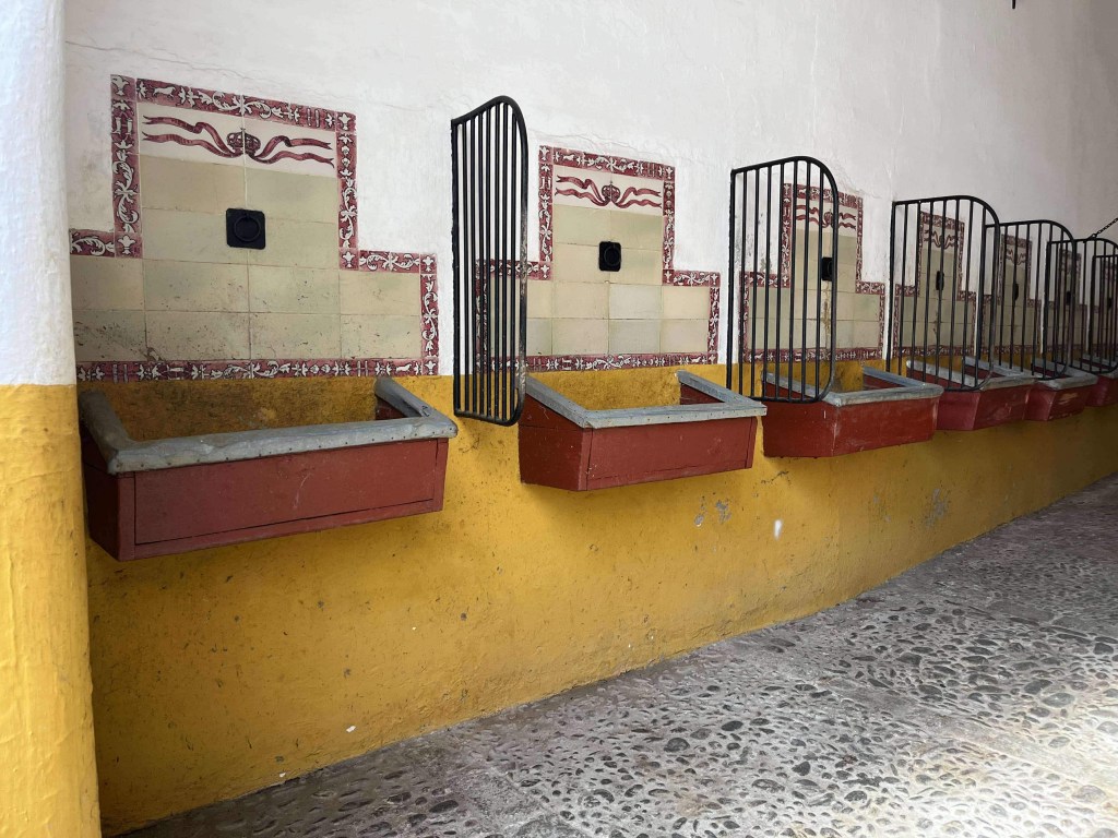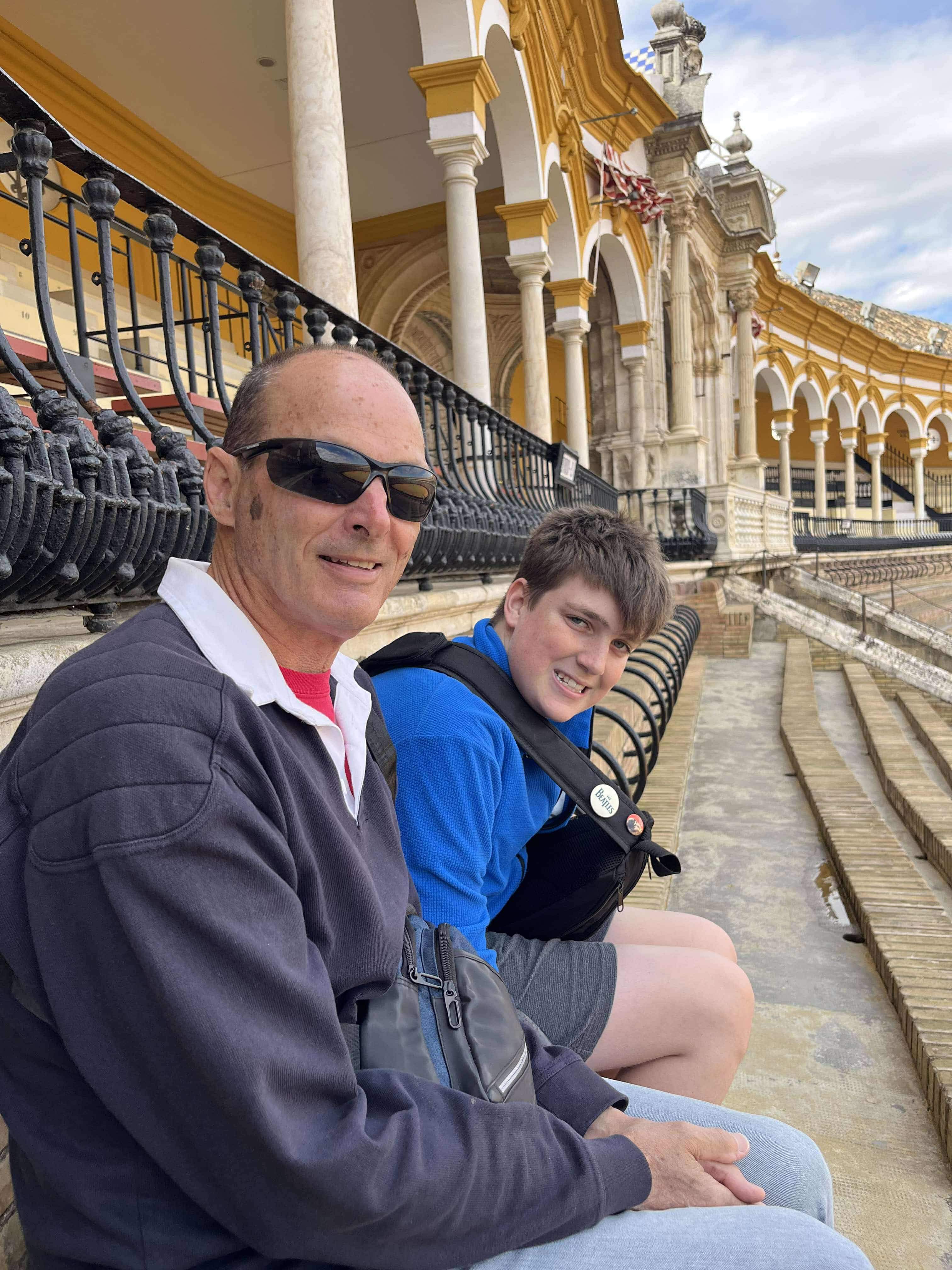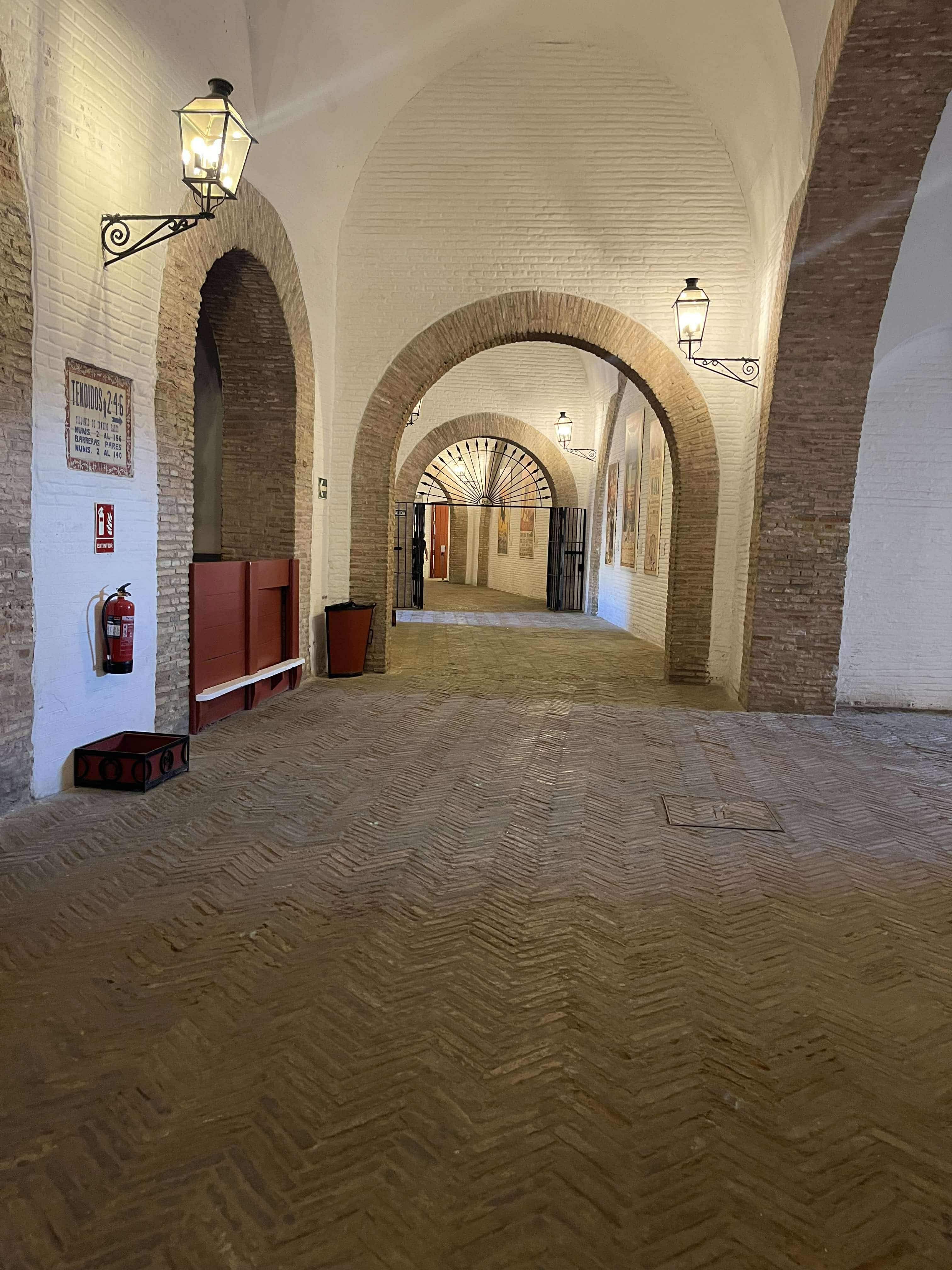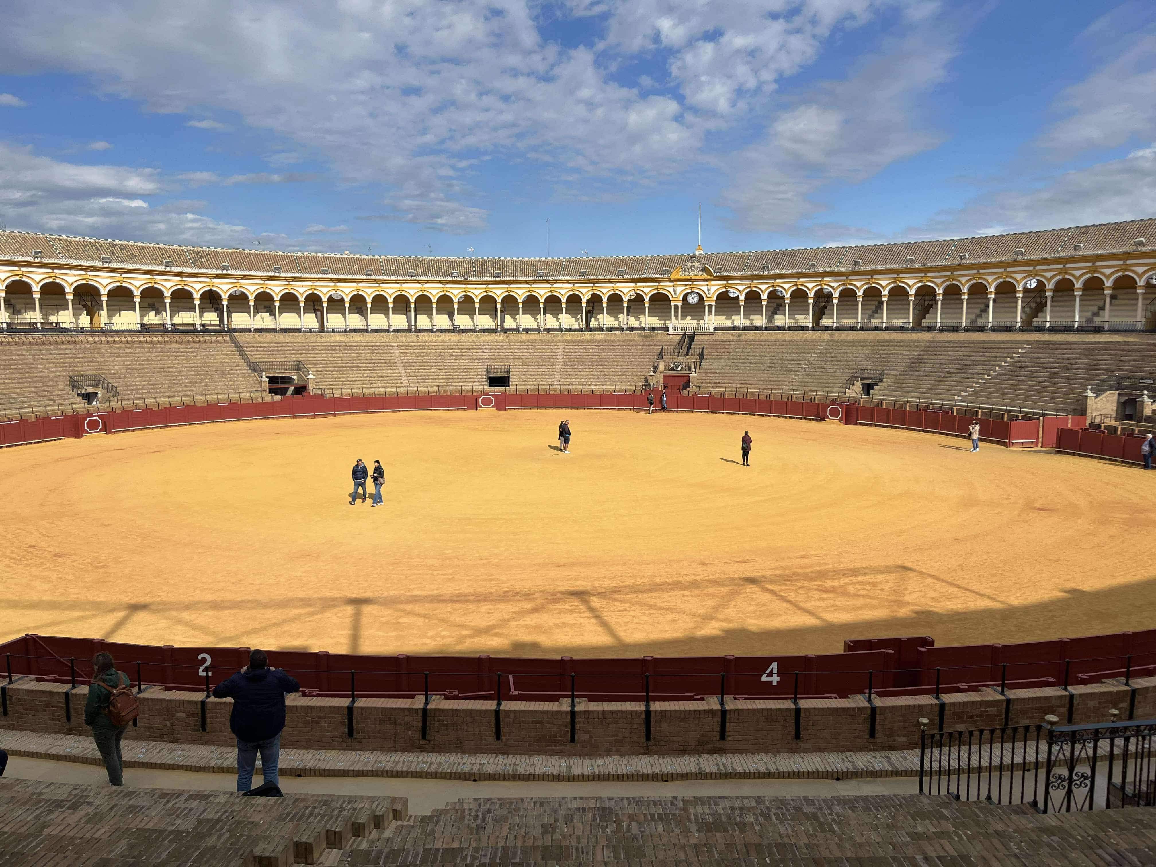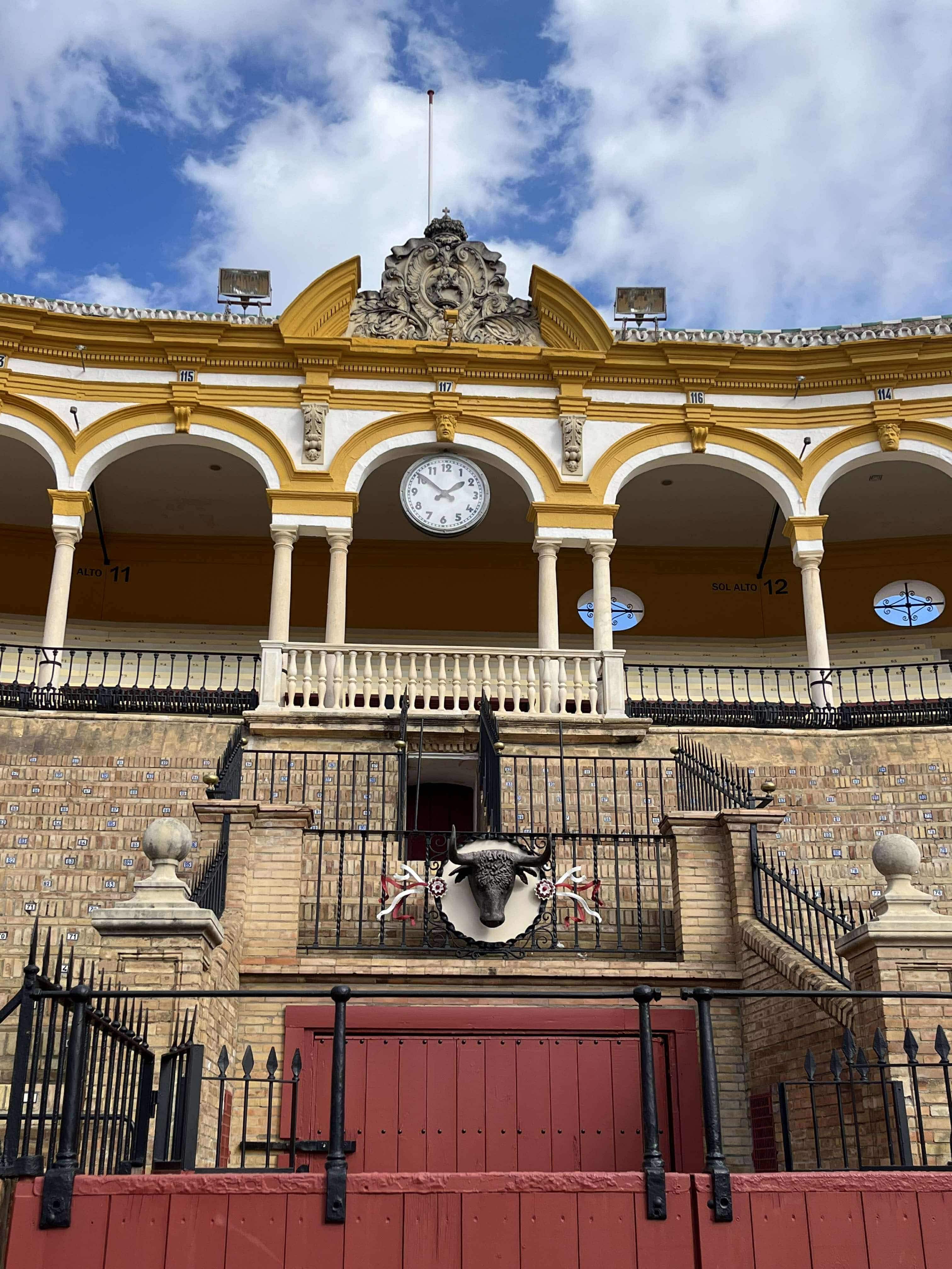Hamish is up for a half day of exploring, but I have woken up with a sore throat. It was bound to happen…I actually feel OK and our plan is based around a trip to the Plaza de Toros – yes, it’s the bullfighting ring. We have since found out that bullfighting still occurs in Sevilla and Madrid (and probably a few other places too). We don’t like the idea of bullfighting, but the hundreds of years of history and culture are hard to ignore. The stadium is impressive and I think still looks like it would have back in the day. It’s easy to imagine the crowds, the Matadors, Toreadors (on horseback) and the huge bulls co-existing in this arena.