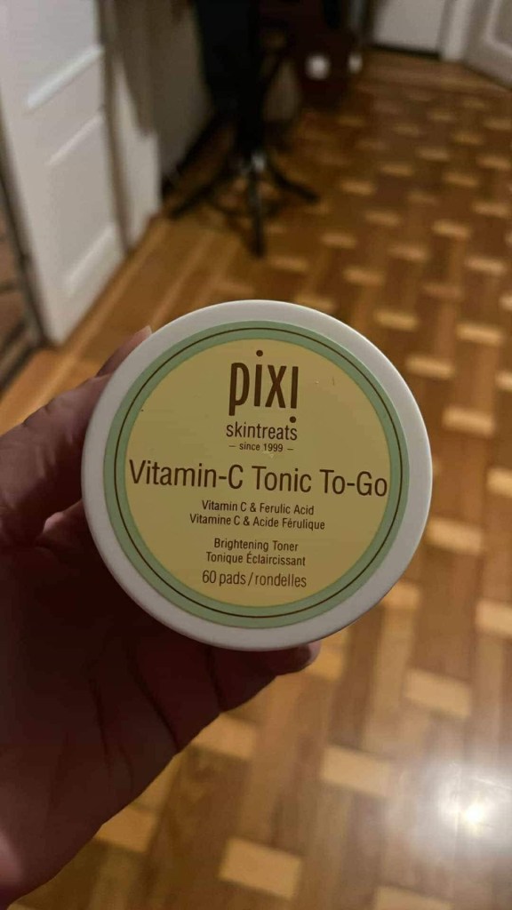My Vitamin C face toner in pre-packaged/pre-moistened ready to use form – a pack of 60 from Sephora, no spills, hardly takes up any space. In my opinion, just a little bit of luxury that still makes you feel you when you’ve been wearing the same outfit for 2 months!
