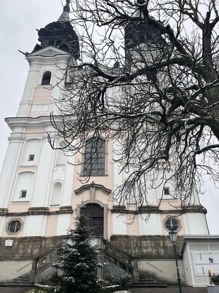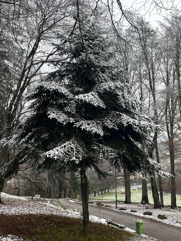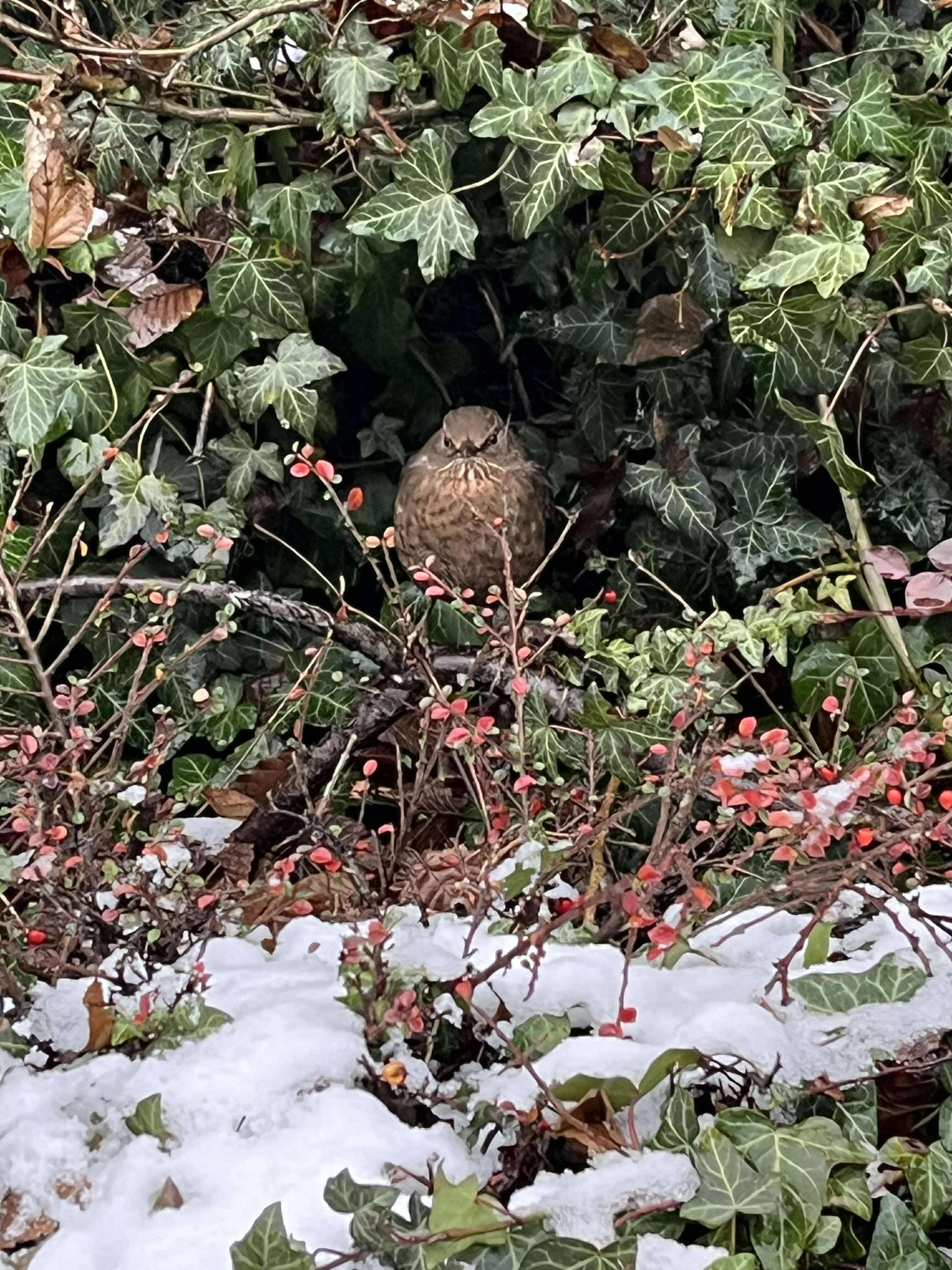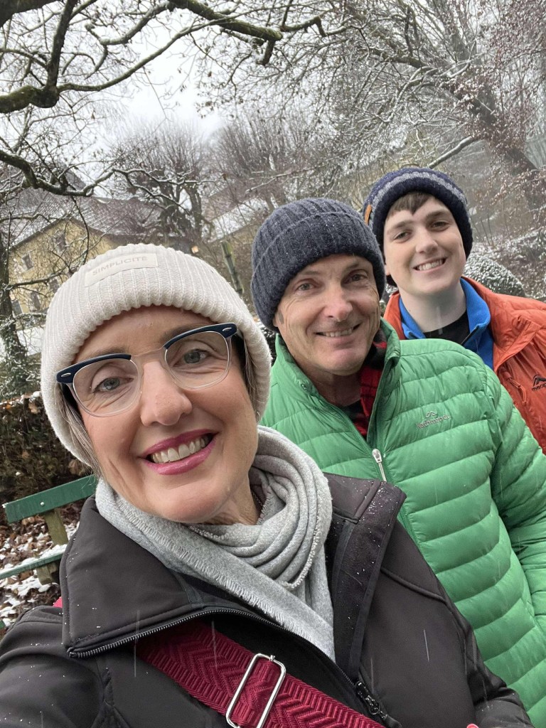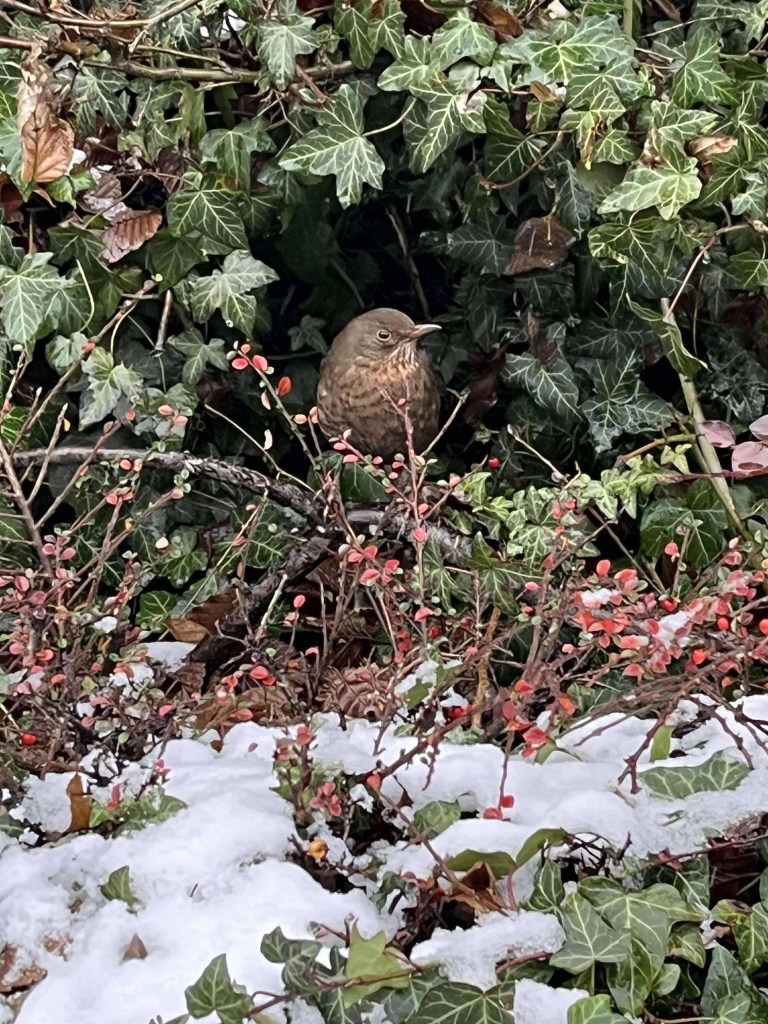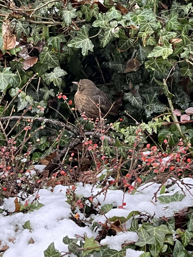 Monday we caught a little tram to Postlingberg – the local mountain. Here it snowed for us! We looked at the church and walked around a bit, Hamish tried to hit Rod with a snow ball, but his aim was way off. Found a gorgeous little bird (female Black Bird) who patiently posed for me whilst I got a few photos. On the way home, the little tram had screens showing the news, Rod was trying to make out some of the news (in German) and telling me what was happening in the world. He says, “Oh, Judy Dench has died. She was 90” Turns out Judy didn’t die, she just had her 90th birthday.