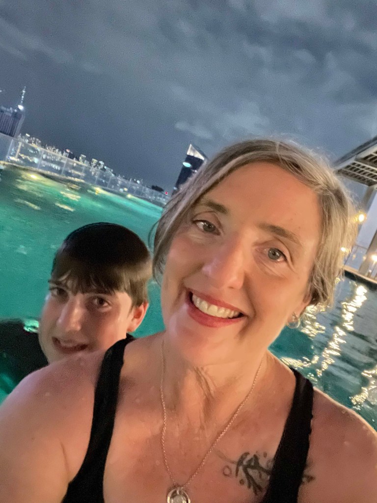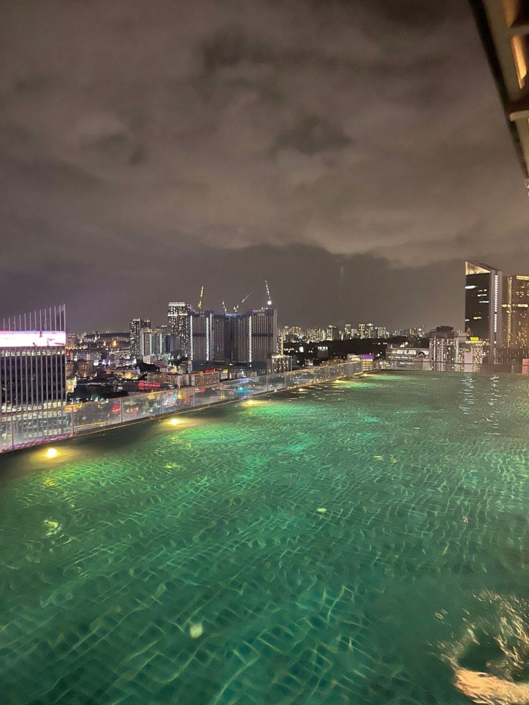 We followed our dinner up with a night time swim in our pool on the 32nd floor of our apartment building – what a novelty!
