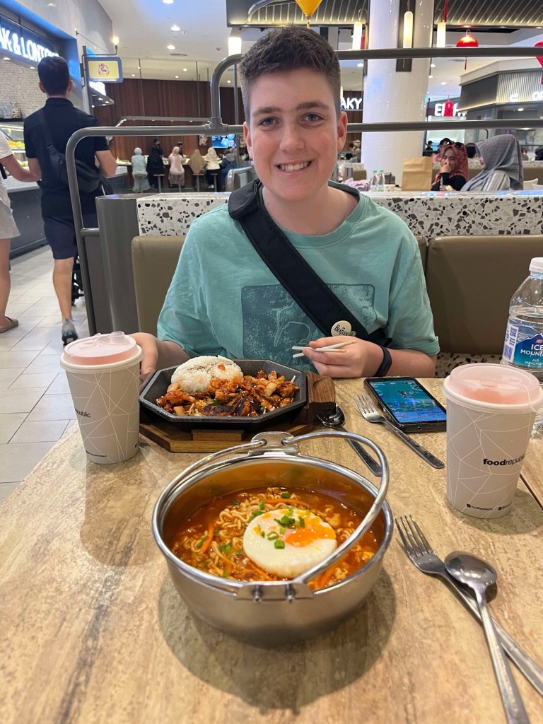 Uncle Roger Fuiyoh! Social media star and comedian, Nigel Ng (whose alter ego is Uncle Roger) has a restaurant in KL and it just happened to be in the Pavillion Shopping Centre which is precisely where we were heading for the purpose of dinner and groceries. Hamish was very excited to be eating here and we have some drink bottle souvenirs. I am fairly certain Uncle Roger isn’t short of a dollar. Whilst our meals weren’t expensive, the menu is pretty basic. We ordered Y So weak popcorn chicken to share as a starter, which was mostly dried chillies. Hamish pranked us by saying he’d eaten the chilli’s and they were fine. Well, we fell for that and spent the next five minutes letting ice melt on our tongues! Uncle Roger roasting Jamie Oliver is well worth the view – search it up!