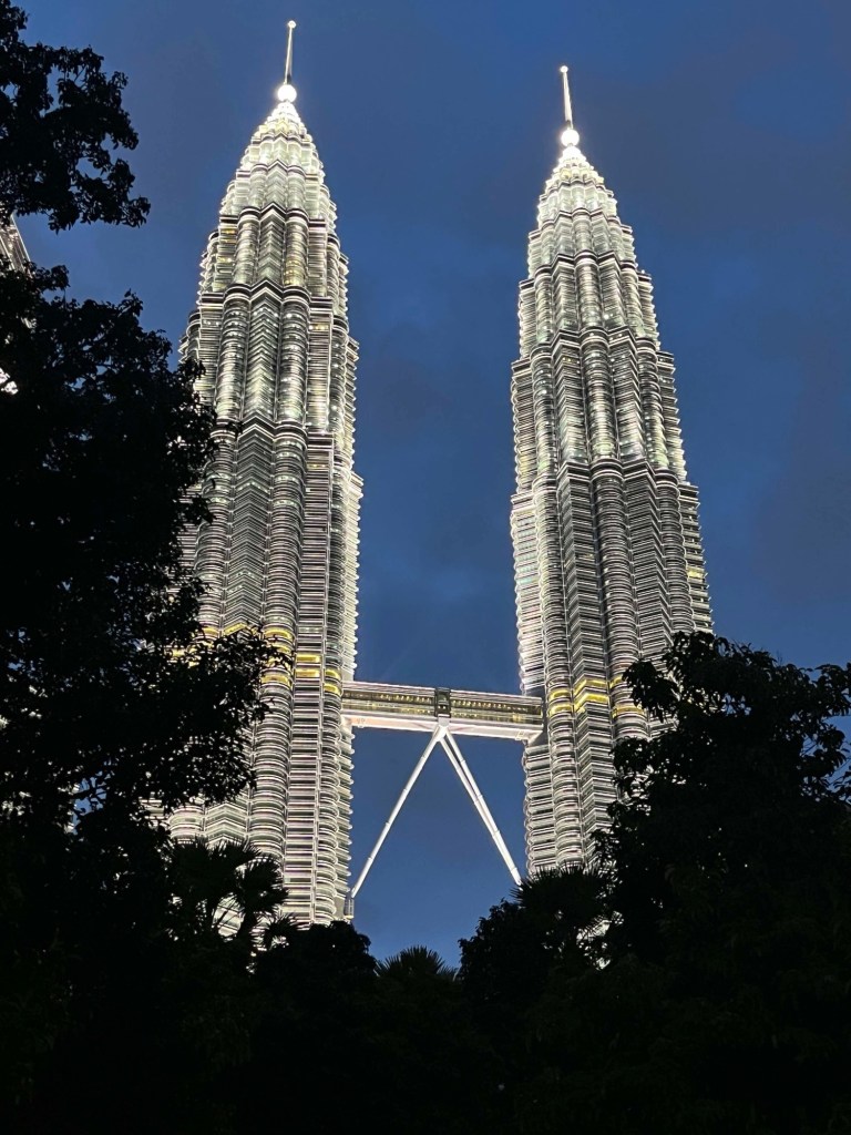 Our next stop for the day was Titiwangsa Lake, where we aimed to do some paddle boating. The path around the lake was bustling with people on hire bikes, many of them tandems, as well as people out for a walk or a picnic. In the near distance, the Petronas towers were visible, so this is a lake right in the middle of the city. We walked to the water’s edge where we saw something that looked like a small crocodile cruising along the shoreline. I questioned Rod using my favourite swear word – “What the _ is that?” It was some sort of huge lizard/monitor/perentie – suddenly paddle boating didn’t seem like such a good idea.
