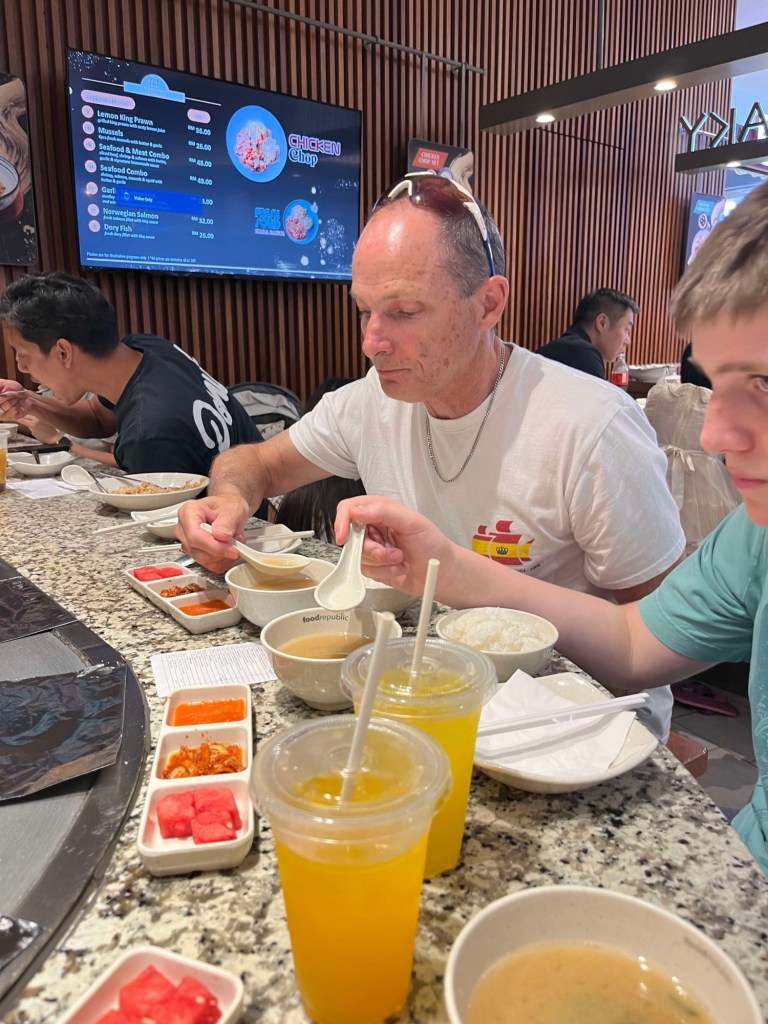 Dinner saw us head back to the Pavillion for some incredible tepanyaki. I had fish, Rod had steak and Hamish had lamb kimchi. Each was served with a generous serving of stir fry, rice, miso soup and sides. With soft drinks, our meals cost $10 each and whilst we have consumed some amazing meals over the past 4 months, we think this may have just been the best.