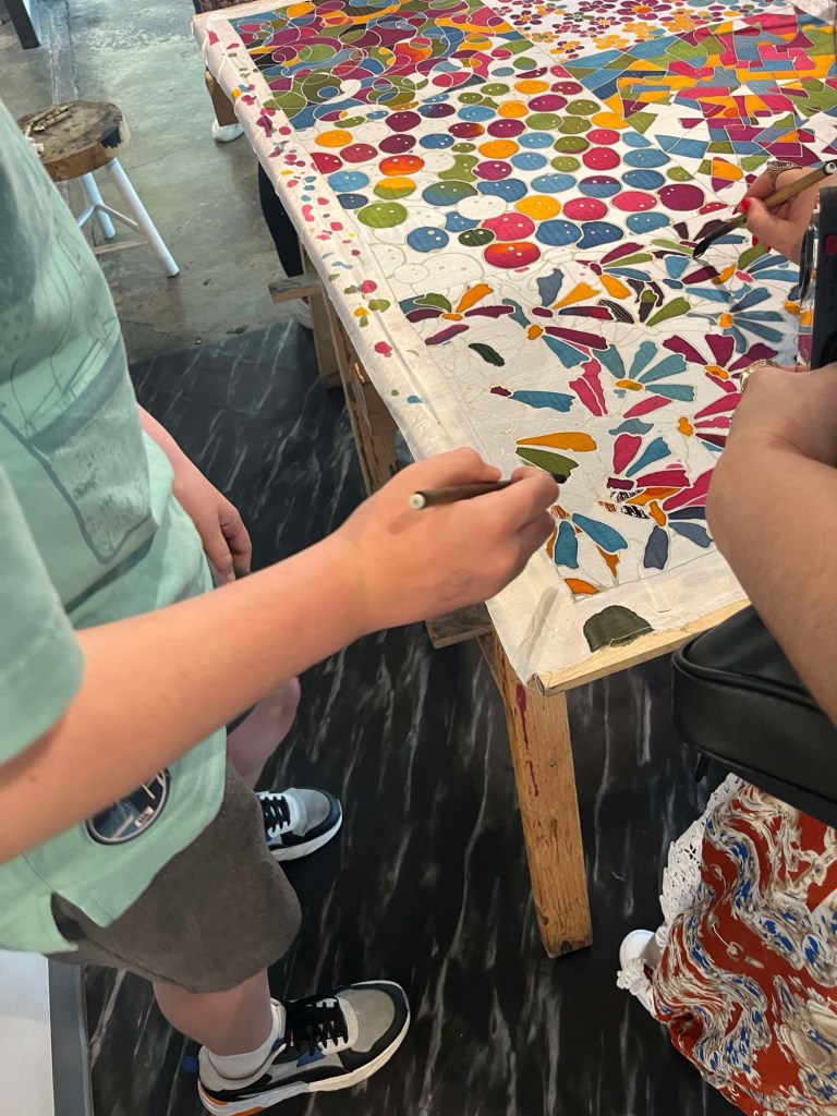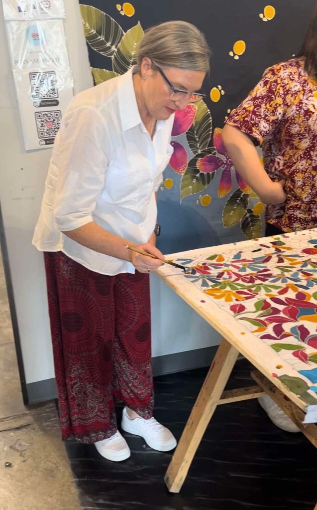 Our last full day in KL! We’d booked a tour to take us to Batu Caves and to visit a traditional Batik manufacturer. At $22 each, this was great value with our friendly Sikh guide, giving us an overview of the different religious groups in Malaysia as well as some local history. The Batik shop was first and there was a section where you could paint on some silk fabric. I loved this and was first to pick up a brush. Rod purchased himself a batik tie.