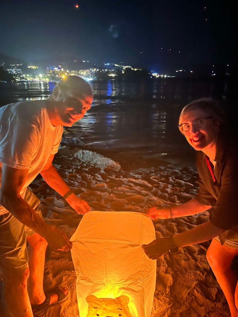 We spent New Year’s Eve at the Ska Bar and Restaurant, a place we visited last time which is situated right on the beach. We hadn’t booked, but thought we’d try our chances. The maitre’d said she had no seats for us, but managed to find us a tiny table in the bar side of the restaurant. With reggae playing in our ears, we had a few beers/fantas and enjoyed the multiple sets of fireworks going off. The other stand out were the sky lanterns. We’d seen them from our pool in the afternoon, but thought they were drones. For $5 you buy a lantern, it is lit and you wait a few minutes for the air to become hot enough for the lantern to rise into the sky. I love the idea of packing up 2024 into a lantern and sending it on its’ way – all the good and bad, ready for a fresh start the next day. It wasn’t always smooth sailing for the lanterns – some of them got caught in trees, some of them caught on fire on the ground, some of them caught on fire in the air causing them to plummet into the sea (or into a buffet, as was one case!). Our little Pooh Bear lantern flew high and she flew away into the distance without any of the aforementioned trauma. Only later we discussed the environmental impact of the lanterns, in that, the cane and metal shells fall into the ocean, hundreds and hundreds of them. To rest my conscience, the next day I picked up a frame from the sea floor – practically an environmental warrior!
