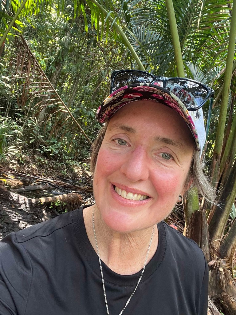 After an informal briefing/chat about elephants in the common area (with heaps of snacks and water laid on) we are loaded into a kind of troopie, where we all stand in the open back and hang on. It’s only a short, slow drive to our meeting point in the rainforest. Our guides actually call the elephants by their names (Boo-boo and Mama) and they duly appear, casually tramping their way through the undergrowth. They certainly look relaxed and happy as we take turns feeding them bananas.