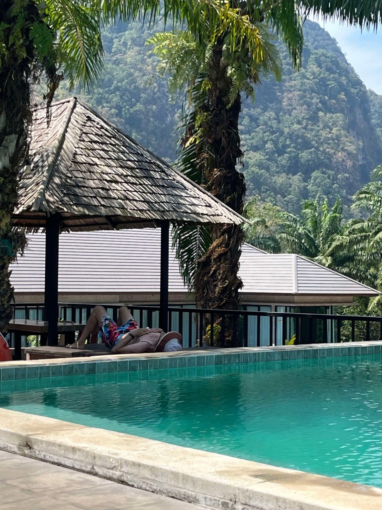 After getting Hamish back on board, we paddled back to the base, inelegantly extracted ourselves from the kayak and were given fresh pineapple and bottled water in a treehouse viewing platform. What a lovely way to spend a few hours! We were transported back to our accommodation where we had a swim and play in the pool, before retiring to our villa for a bit of downtime.