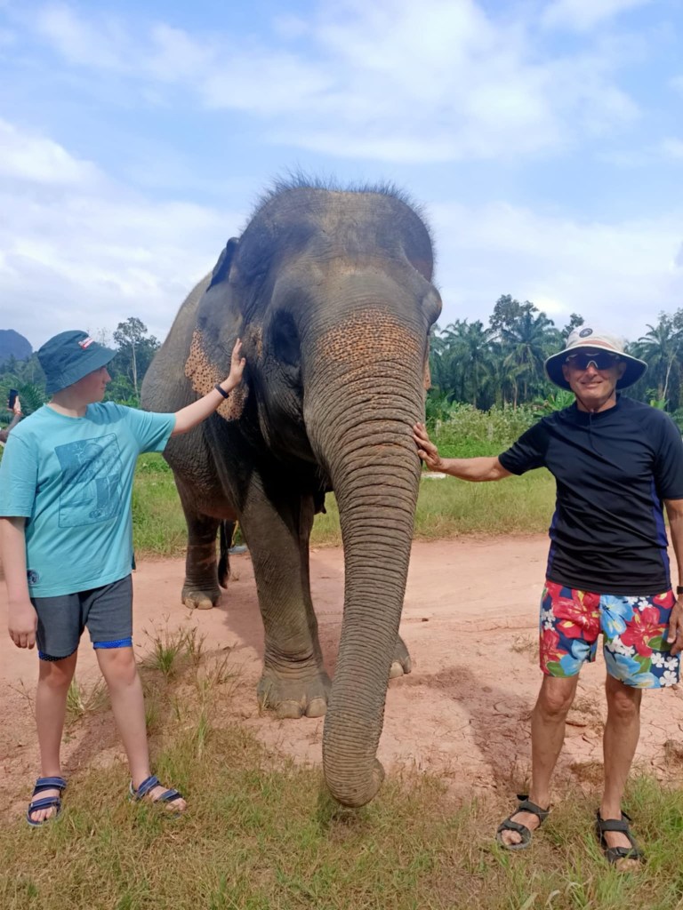 The transport arrives on time to collect Hamish and I for our elephant experience. We have chosen this place because it features “rescue” elephants, who now carry no passengers and do no chores. The tour’s motto is “love elephants.” And it does not disappoint. It’s also about 500 metres from our accommodation, but the route is circuitous.